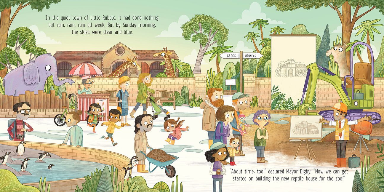 It's an exciting day at the Little Rubble zoo, as work is beginning on a new reptile enclosure! The only problem is that it has rained all week and Mayor Digby's digger soon becomes completely stuck in the squishy mud!