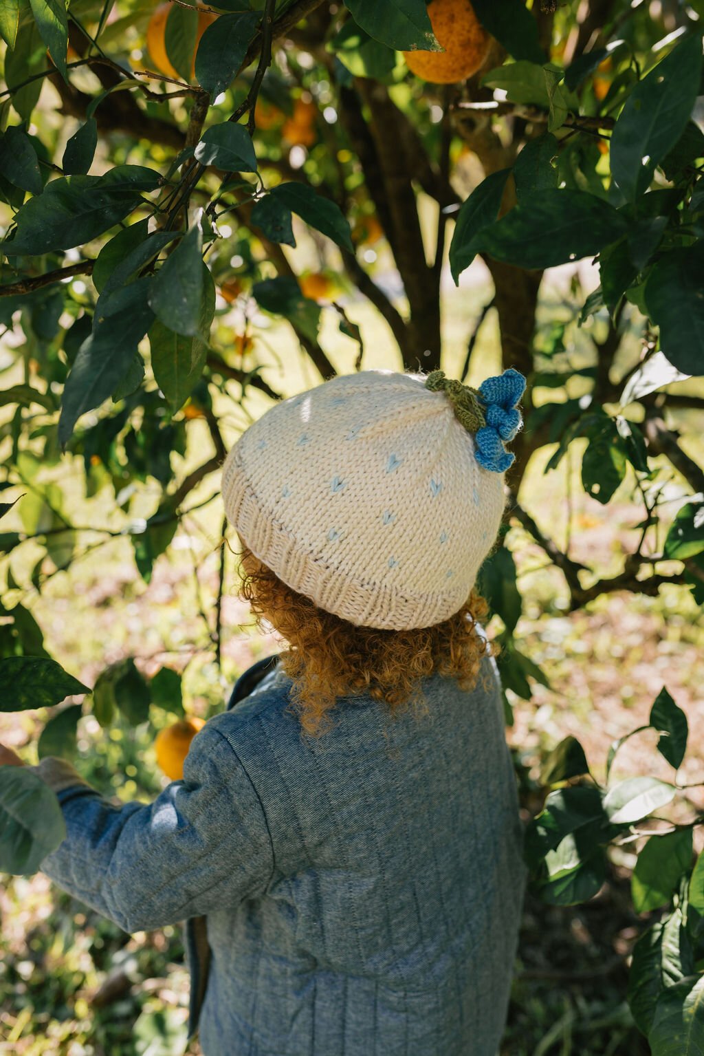 The Acorn Bluebell Beanie is a stunning and whimsical beanie. Hand-knitted in a soft cream with a delicate blue spot, it’s topped with a beautiful crochet bluebell flower for a lovely floral touch. Made from a cosy blend of 30% wool and 70% acrylic, it’s warm, breathable, and gentle on little heads. Ethically hand-knitted by a Women’s Collective, this beanie is the perfect blend of comfort and cuteness. Pair it with the matching scarf for extra warmth and cuteness.