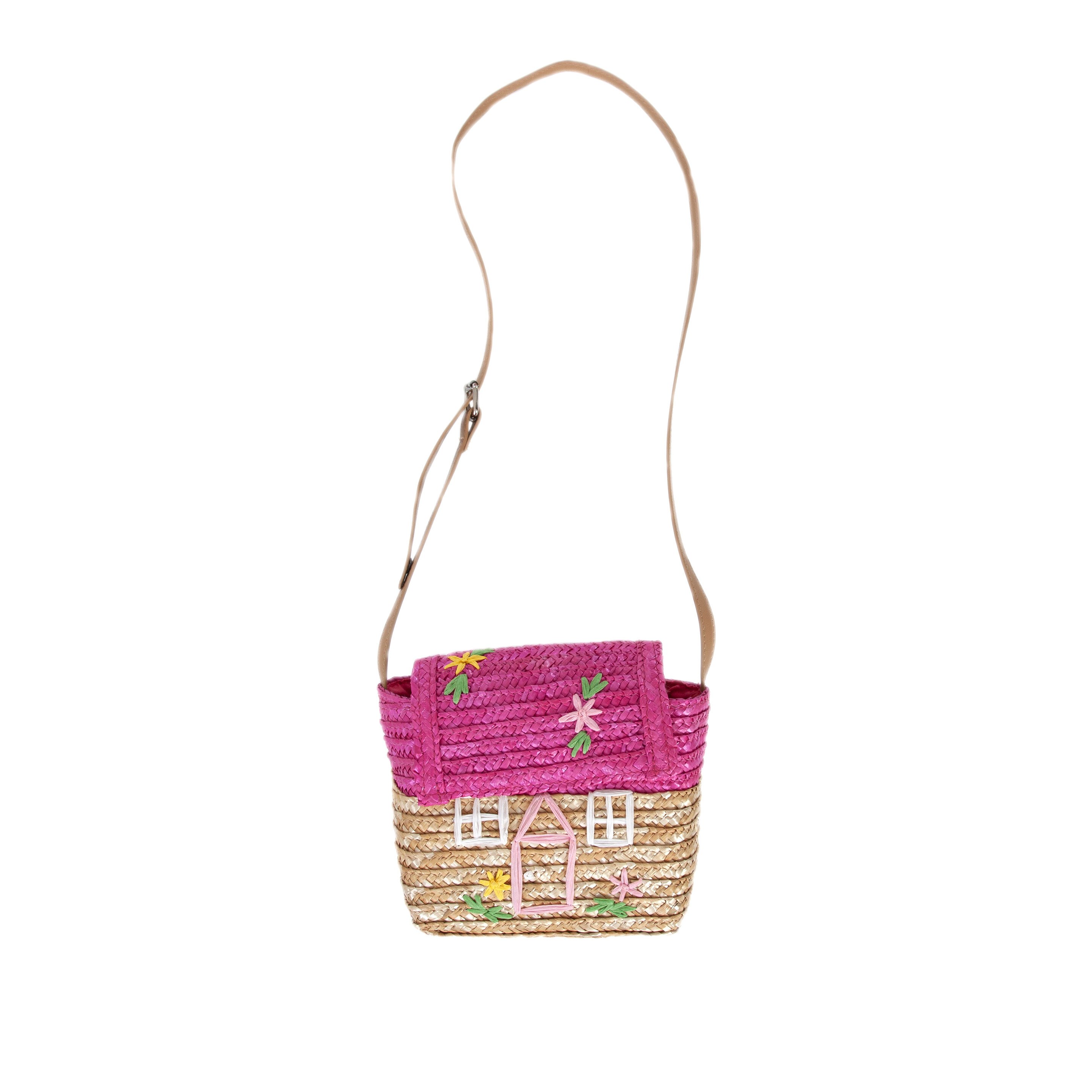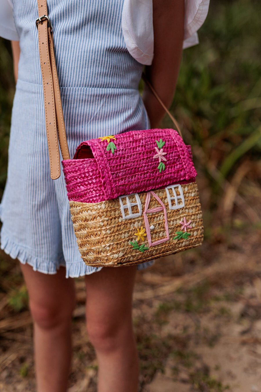 The Acorn La Maison Straw Bag is the bag of every little ones dreams! A cute little straw house bag to carry their treasures and make every outfit amazing! Featuring a pink roof, windows, door and flowers all hand-stitched.