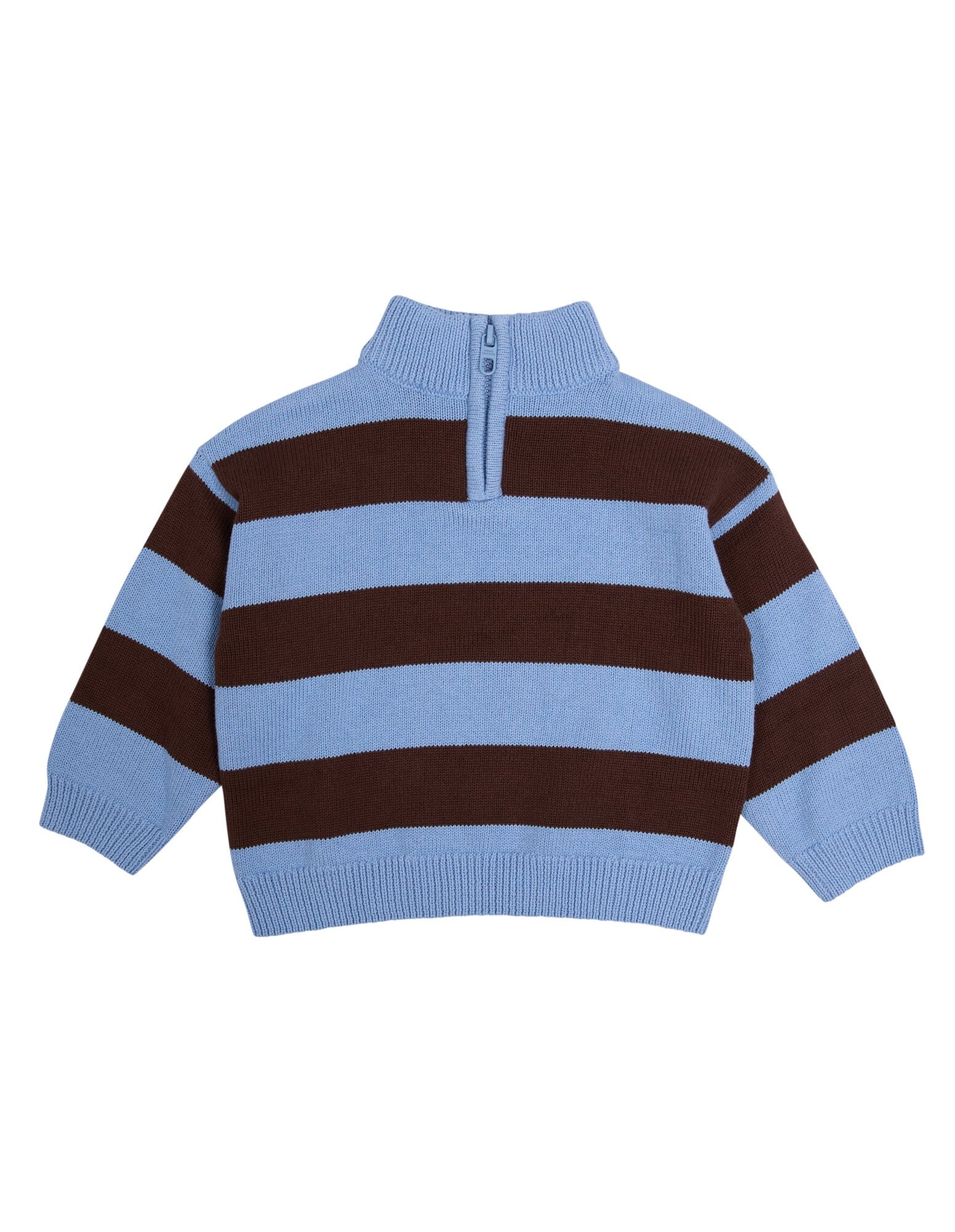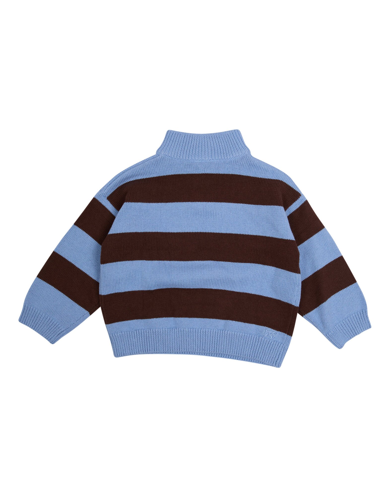 The Orbit 1/4 Zip Knit by Animal Crackers will become a staple for you tiny humans winter wardrobe. This easy to wear jumper is made from 100% cotton and features a 1/4 zip opening at centre front and large block stripe design. Dress up with denim or keep it casual with trackies, this style is bound to be your go-to winter piece.