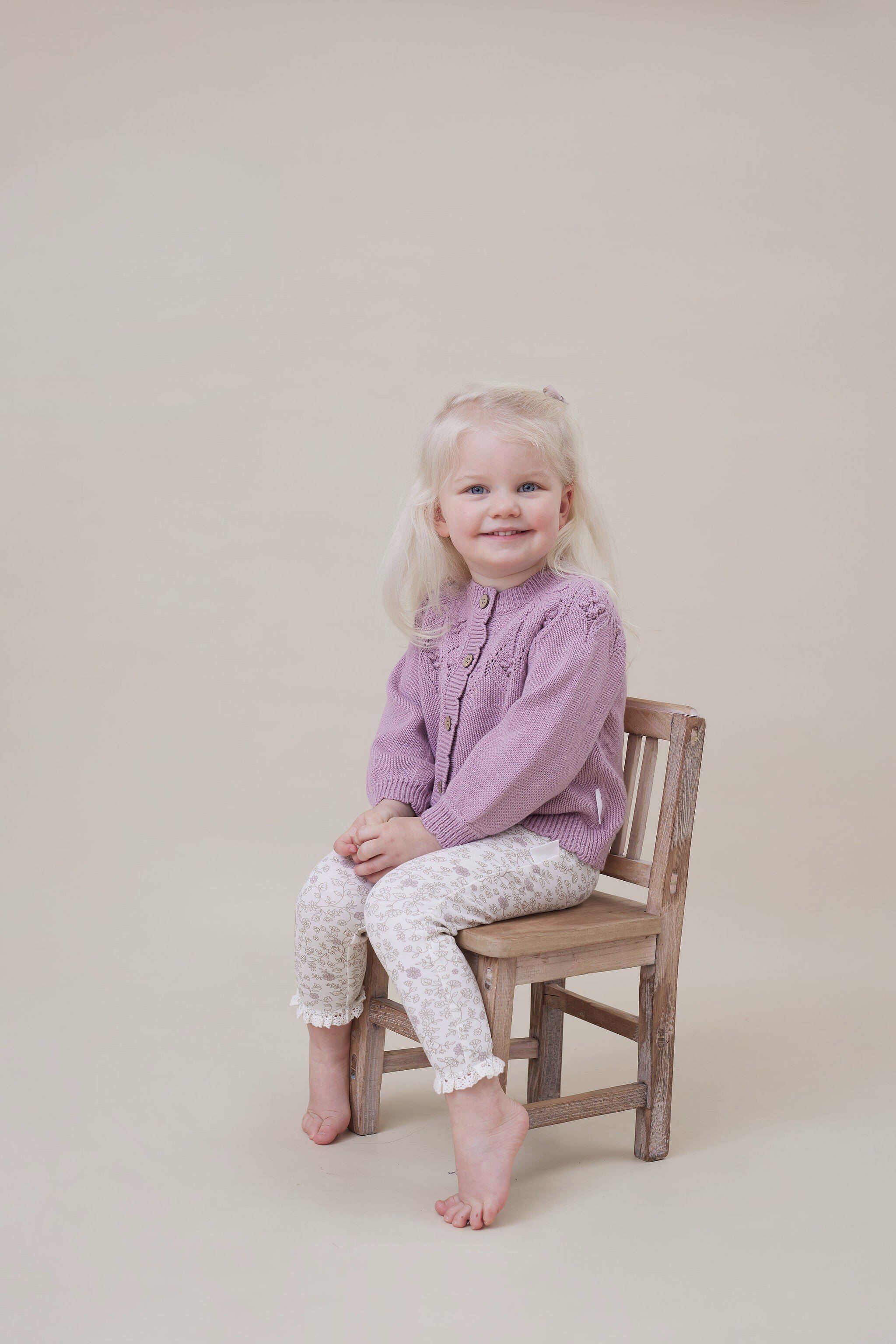 Made from GOTS certified organic cotton, these leggings feature a delicate foral print, and lace hem detail to cuff.