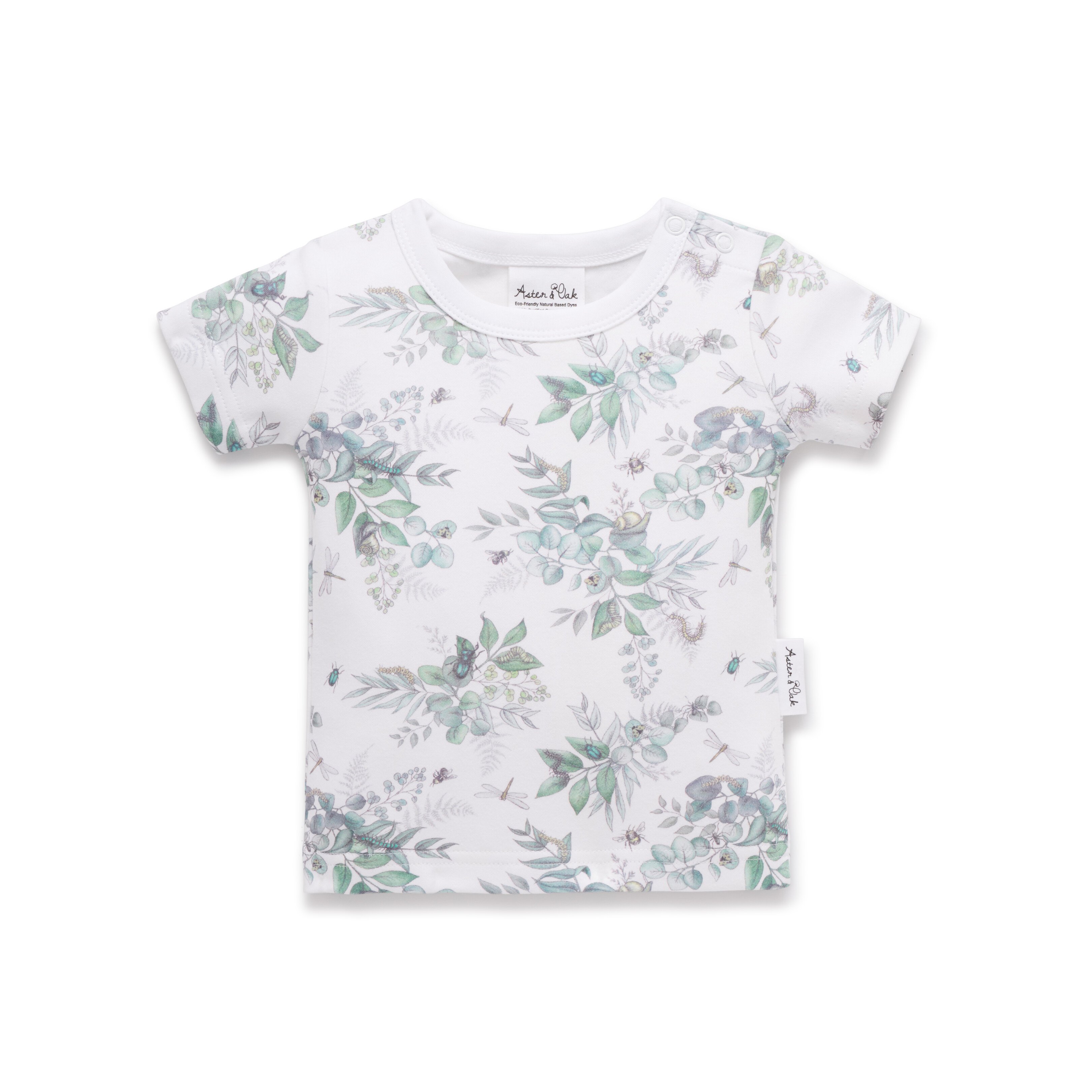 Made from GOTS, certified organic cotton, this classic Aster & Oak snuggle bug print tee features a neutral all over foliage print in green hues over a white base and snap buttons to shoulder to make changing easy. 100% Certified organic cotton #USB008294. Made in India. Wash according to care instructions.