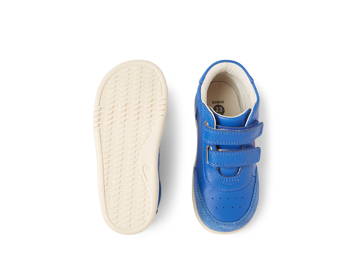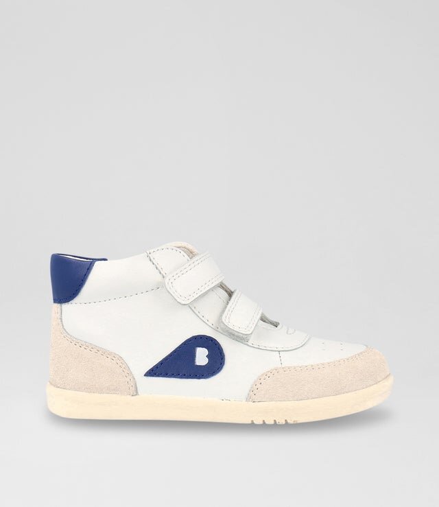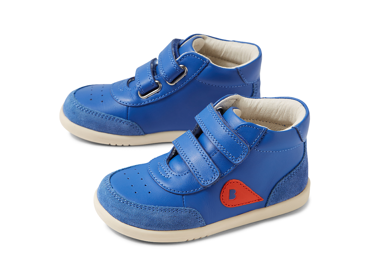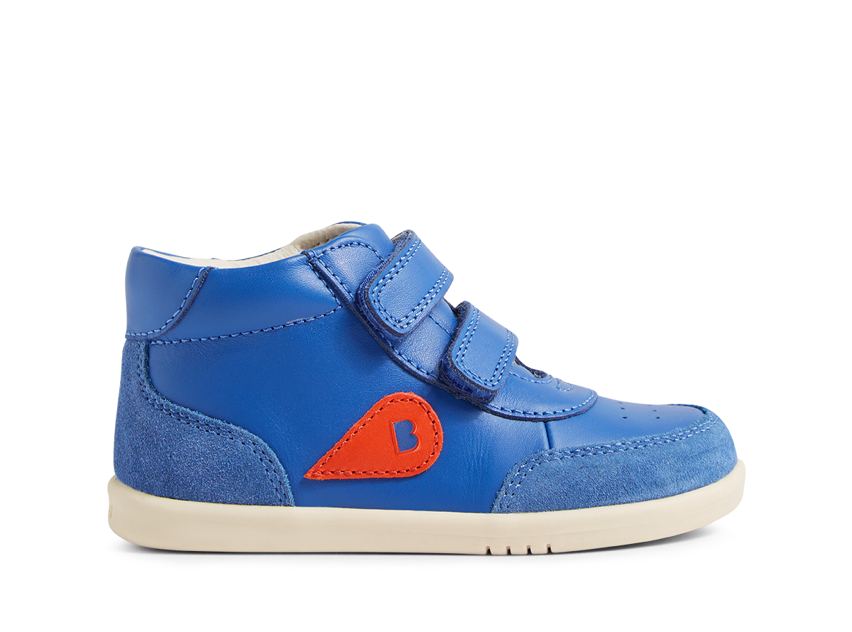 Sturdy, bouncy and just plain cool. The Bobux IW Champ Hi Boot are the perfect sneakers for little ones that like to run, jump and twirl through life. The double adjustable hook-and-loop straps and padded collar make these shoes as comfortable as they are cool. The high top adds ankle support and style. Crafted in high-quality leather and suede, with support and flexibility, Champs are the perfect trainers to help children feel even more confident in their movements.