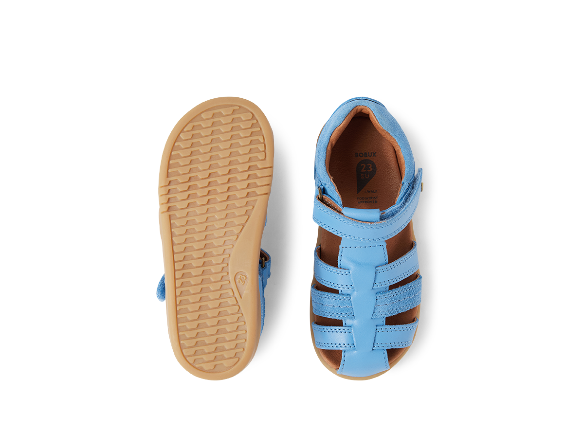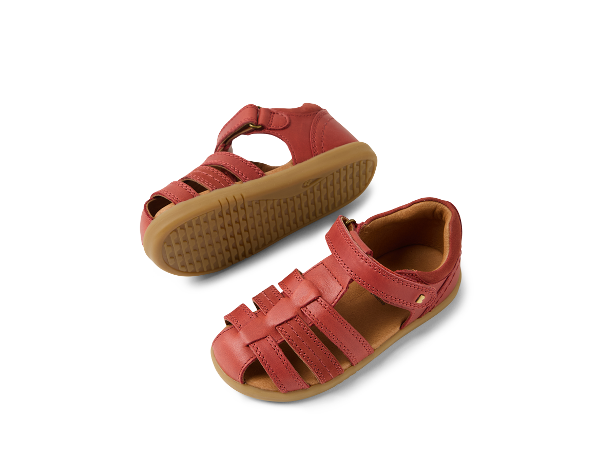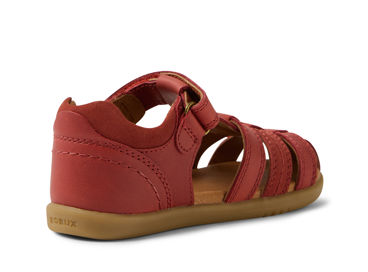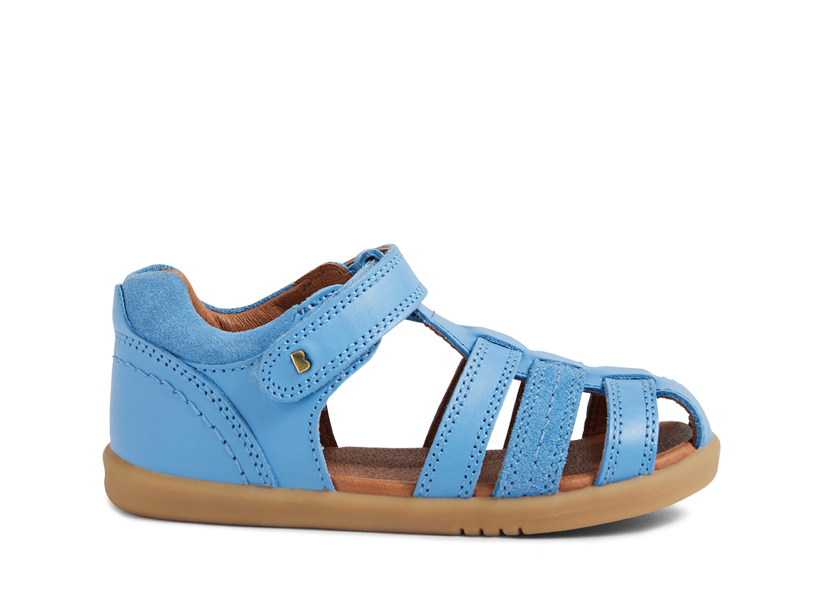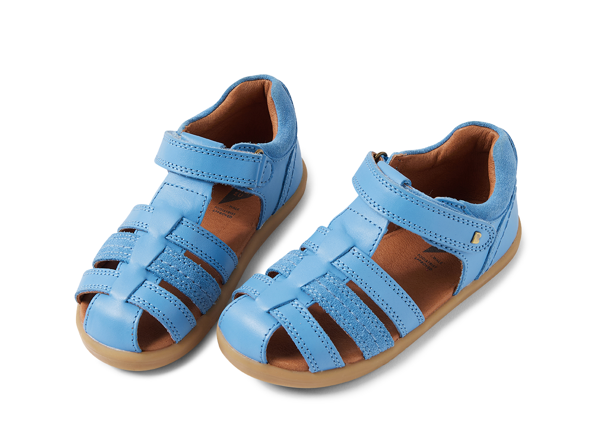 This classic summer Bobux sandal has a closed toe for added protection, while open sides provide airflow and breathability. In a range of colourways, this sandal elevates any outfit - from school uniforms, clothes for outdoor adventures, to Sunday best. The Bobux Roam sandal boasts an ankle strap fastening with velcro for a secure, adjustable fit and Bobux's signature brass icon stud. A great looking sandal for any occasion - they'll want to wear the Roam on repeat. Podiatrist approved for growing feet.