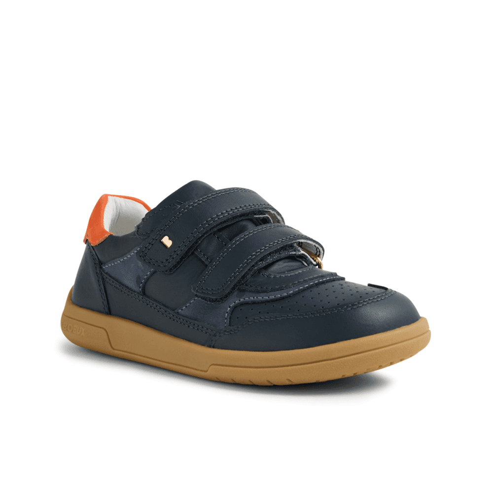 The KP Hunter Trainer is a Bobux classic with pared back styling, signature brass rivet, and a contrast heel tab. Featuring double strap closures and perforated detailing for breathability and good looks, this shoe is made for play and will fit any occasion.
