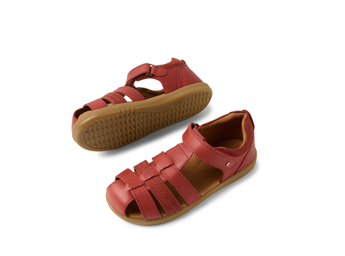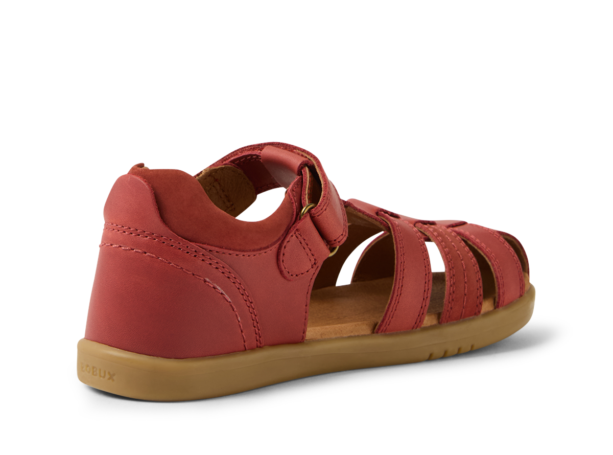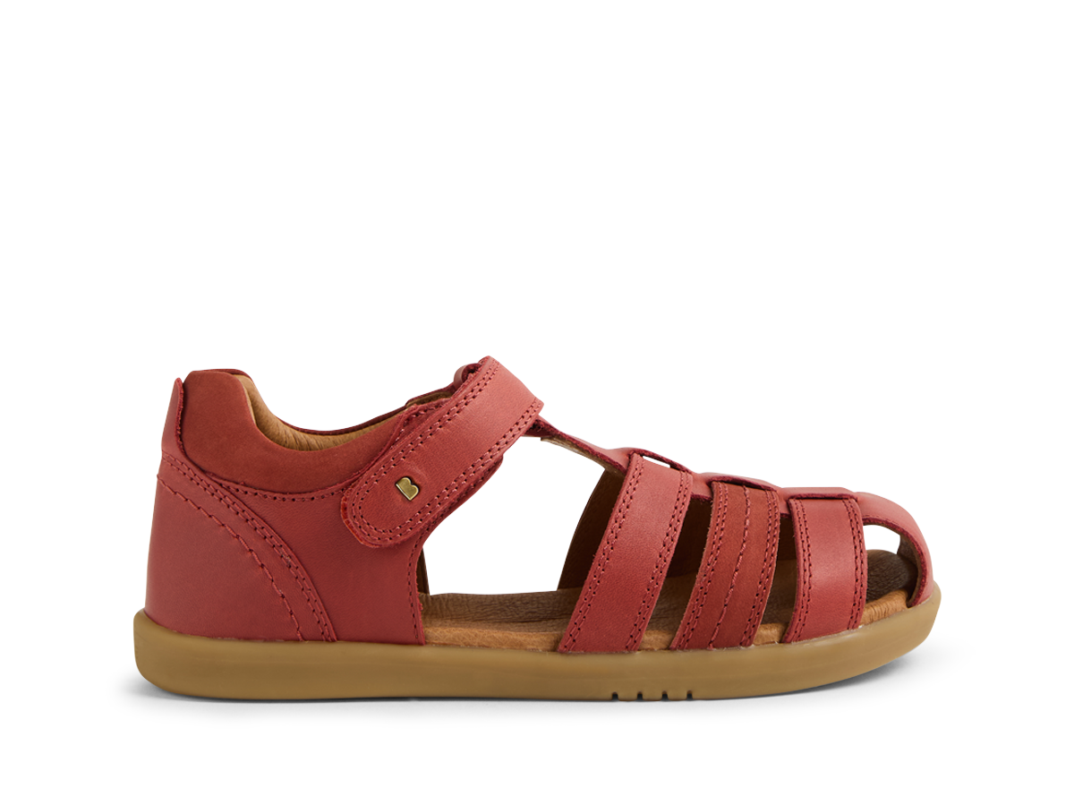 This classic Bobux summer sandal has a closed toe for added protection, while open sides provide airflow and breathability. In a range of colourways, the Roam is the sandal they'll love to wear all summer long - at the beach, for special occasions, for play and school, this sandal does it all. The ideal warm-weather addition to any outfit - from school uniform to Sunday best, the Bobux Roam Sandal boasts an easy-on ankle strap fastening for a secure, adjustable fit and is softly padded at the ankle for added comfort. Bobux's signature brass icon rivets provide the perfect finish. Podiatrist approved for growing feet.