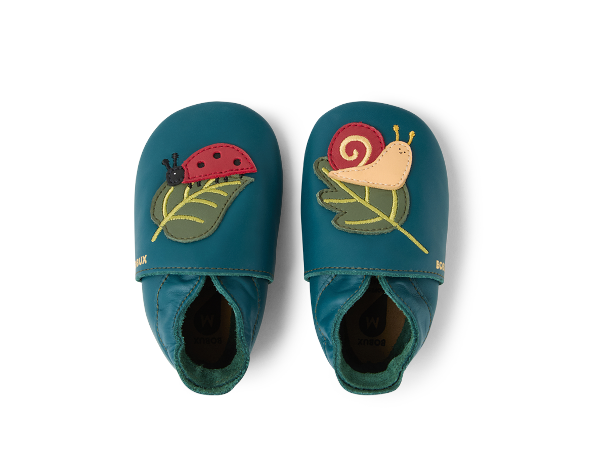 Check out this wee Bobux Beastie! These leather baby shoes bring garden friends within reach. Crafted from breathable and soft leather, Bobux's Soft Sole Beastie has sweet appliques that will delight small eyes and hands, and an elasticated fit that makes quick work of getting them on and off. Finished with a soft suede sole that lets little feet flex and move while they're exploring new movements, this design makes for a memorable first pair.