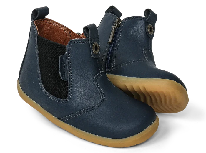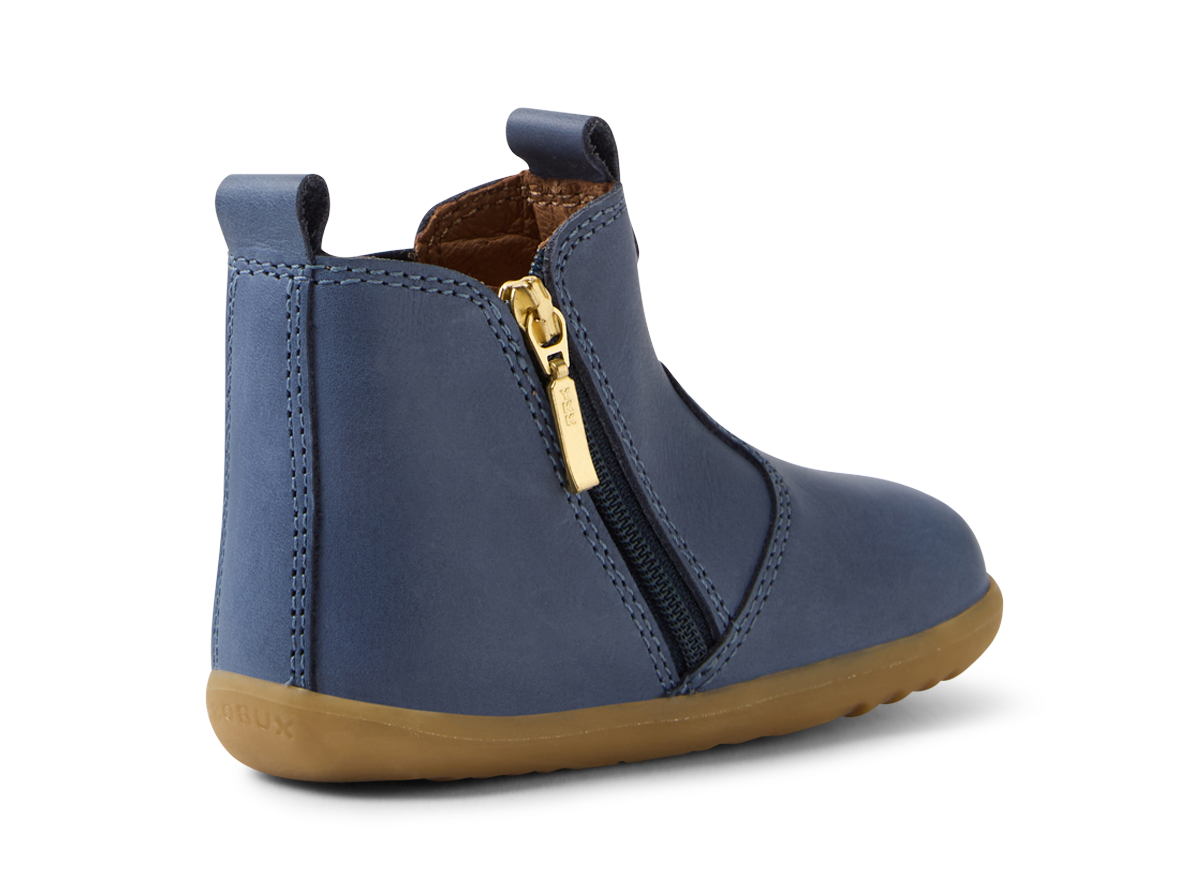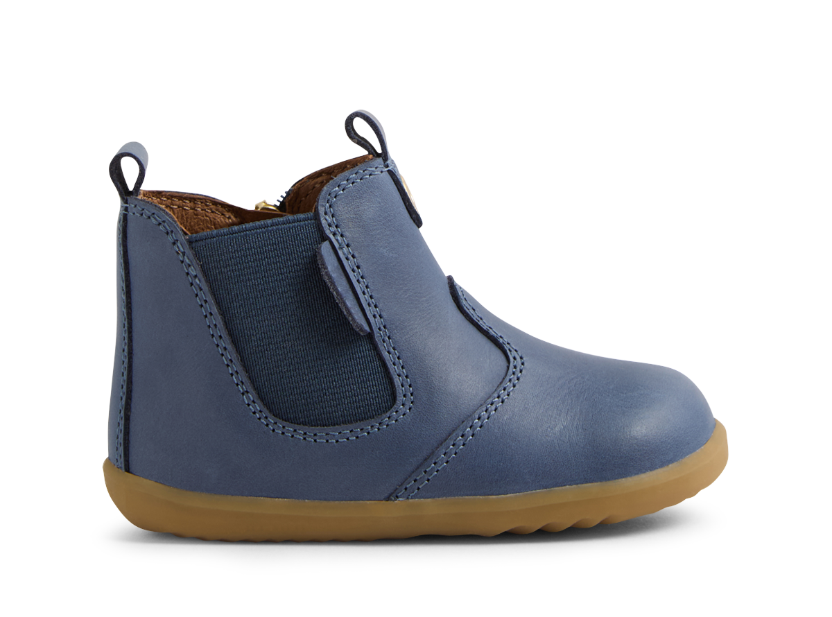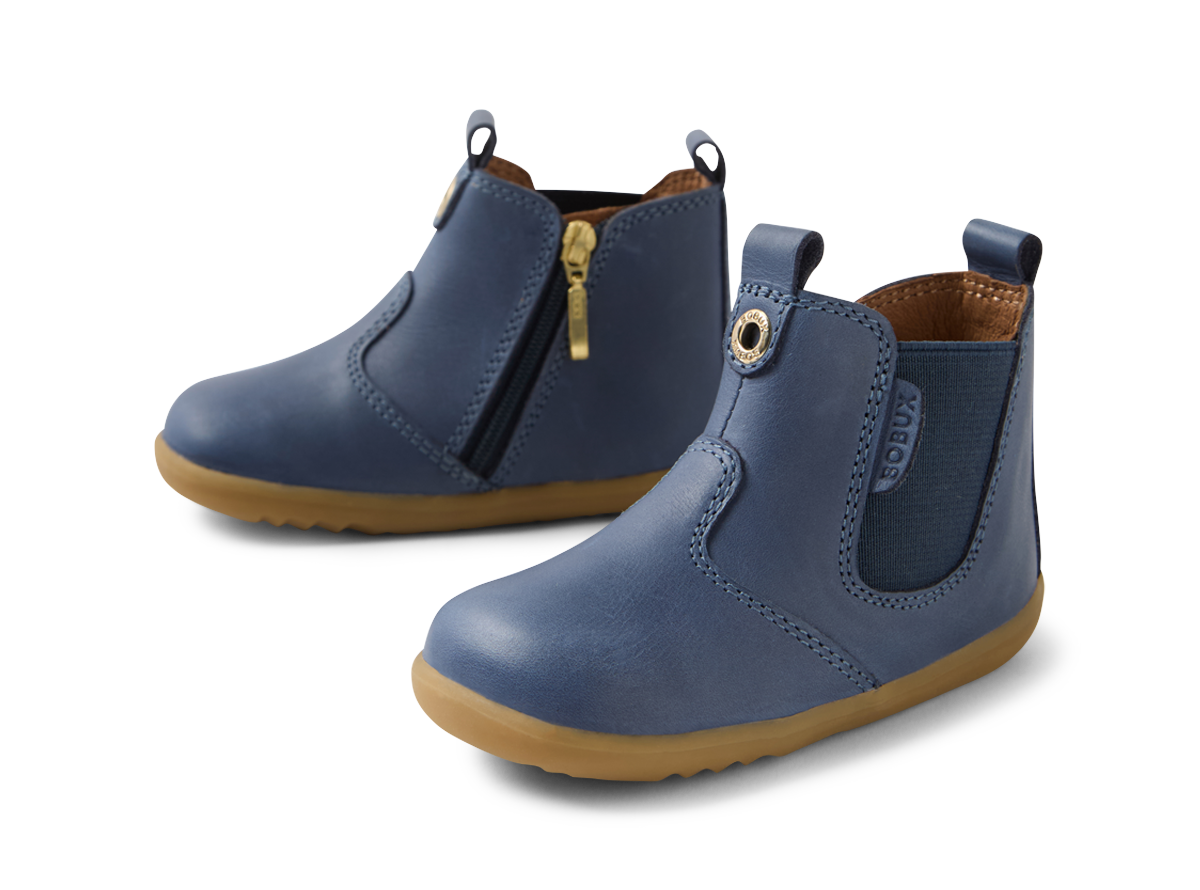 A staple in every Bobux Collection, the Jodhpur is a heritage boot that delivers in comfort, practicality and style. Luxurious leather with a classic navy finish makes the Jodhpur perfect for all outfits and occasions, while a zip closure and elastic gusset give this timeless style a comfortable, secure fit. The Jodhpur fits true to size, and is a great match for first walkers.