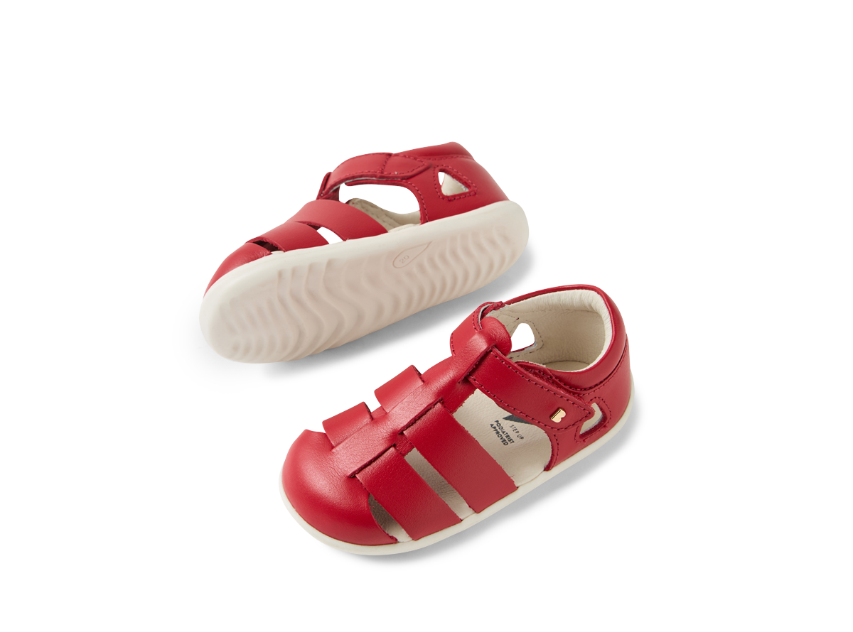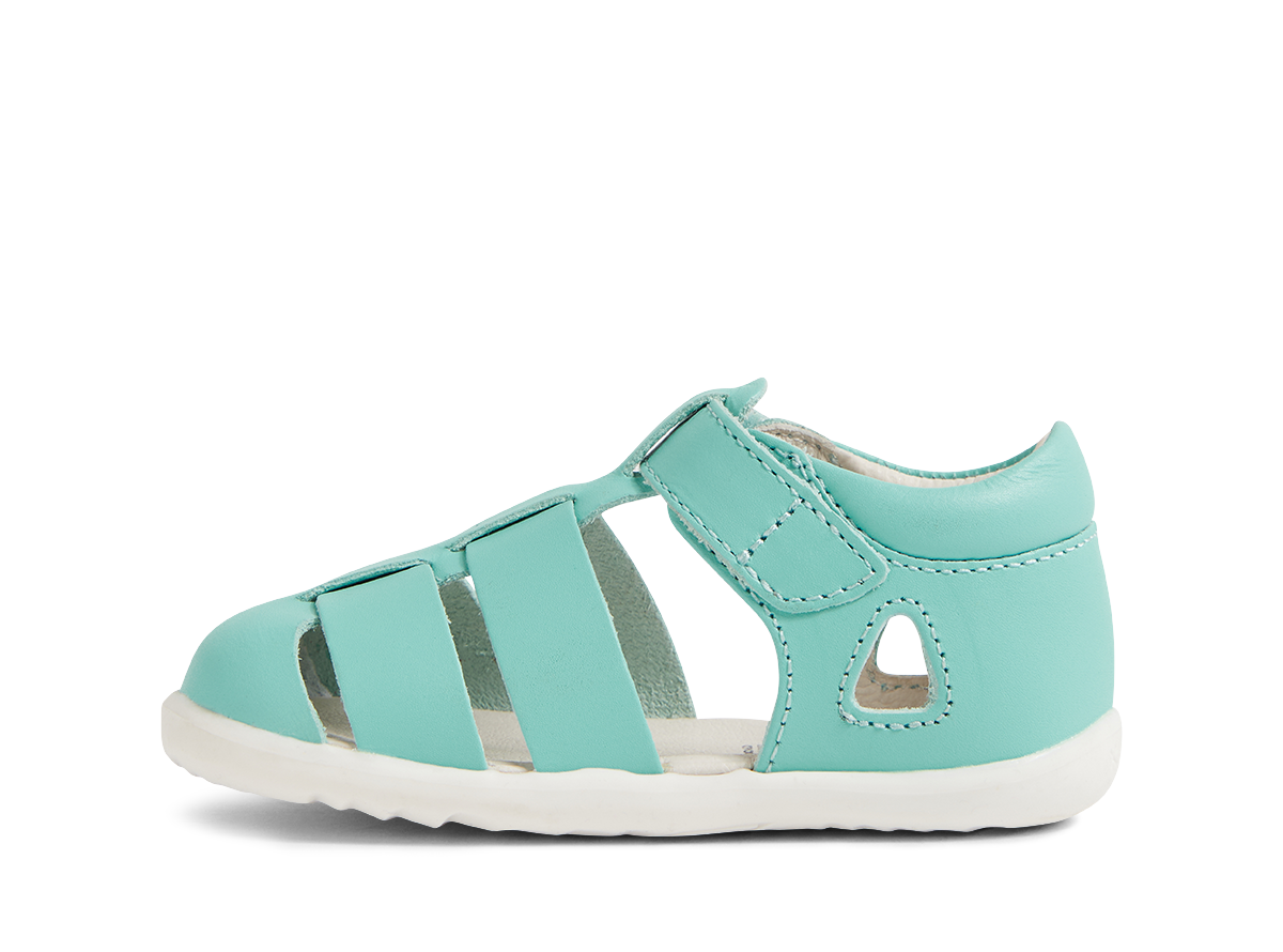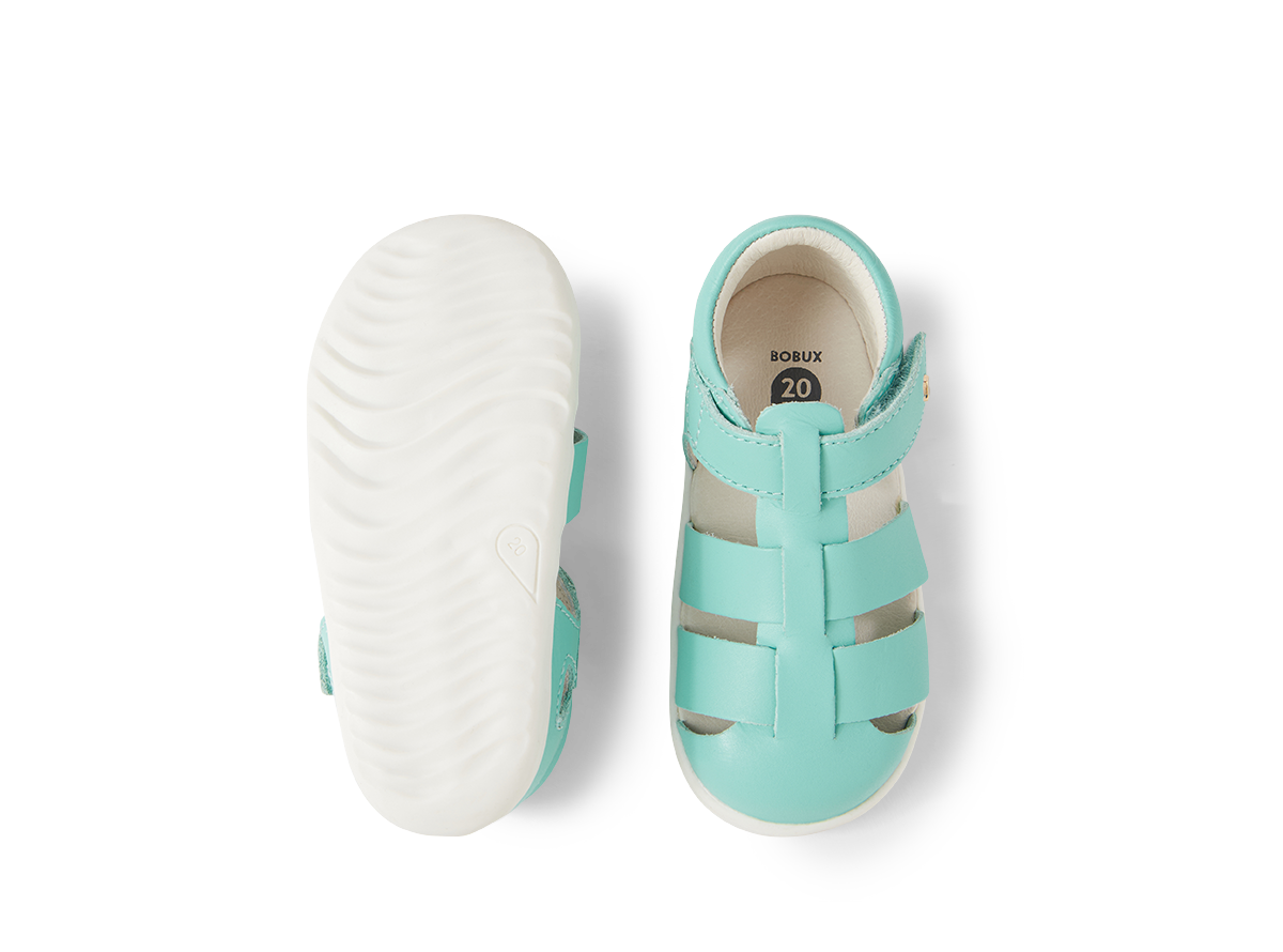 The Tidal sandal is made from fast-drying leather, unlined at the front to optimise the quick-dry effect, and lined at the heel to keep growing feet comfortable. A clean, simple design accentuated by bold blueberry colourway and contrasting white sole. Feet are protected by a closed-toe design, while cutouts in the premium leather act as vents to improve breathability. The Tidal sandal has all the features to keep feet cool and comfortable all summer long. Suitable for first walkers, this style fits true to size.