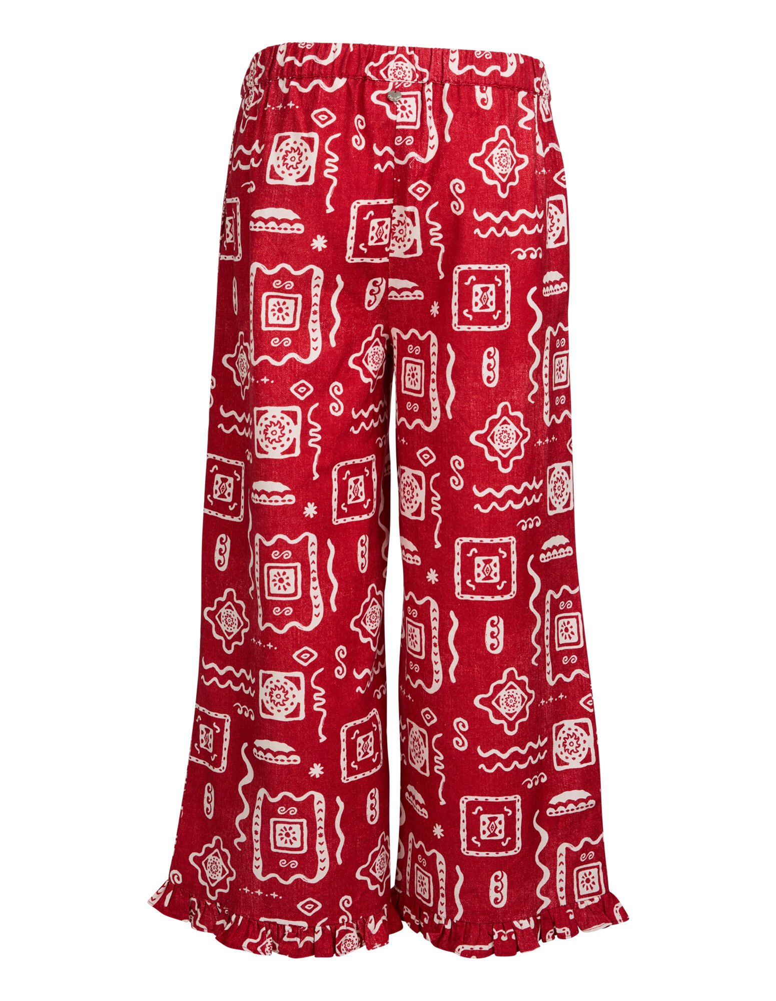 Embrace the summer vibes in the Amalfi Pant by Eve Girl. This style has a wide leg fit, elastic waistband and frill at the hem, on a custom yardage print cotton linen blend fabrication. Pair back with the Eve Girl Amalfi Top for the ultimate everyday look.