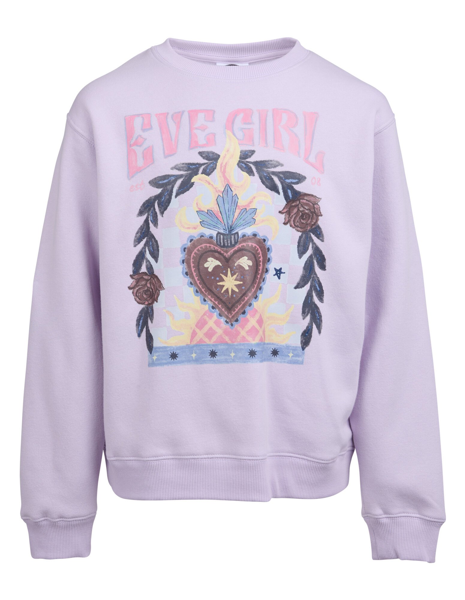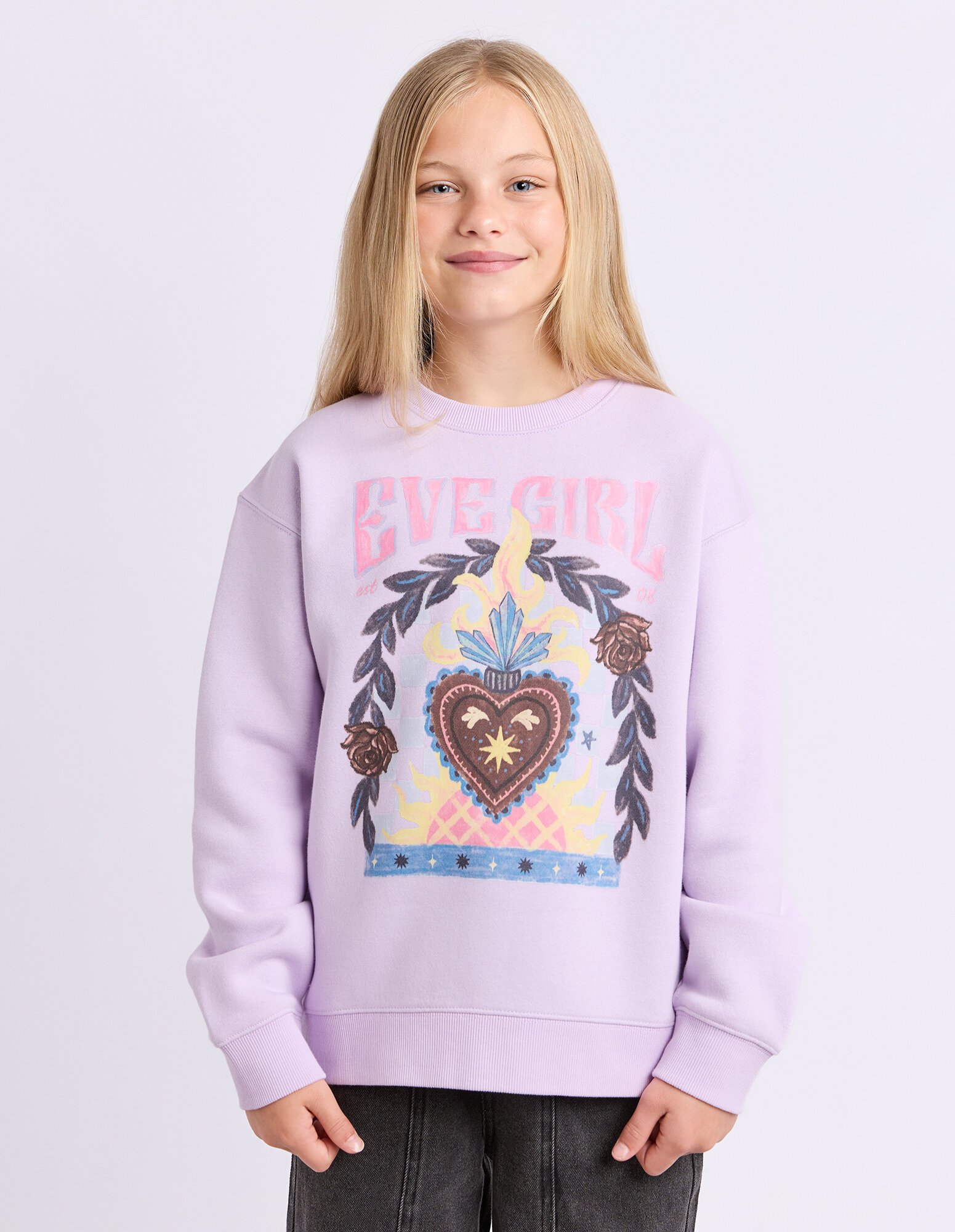 The Flaming Heart Crew by Eve Girl is a fun update to your fleece collection. This jumper is made from a soft cotton polyester brushed fleece, and features a hand painted style chest artwork. Complete with a crew neckline, boxy fit and twin needle stitching, this style pairs back perfectly with your favourite Eve Girl denim.