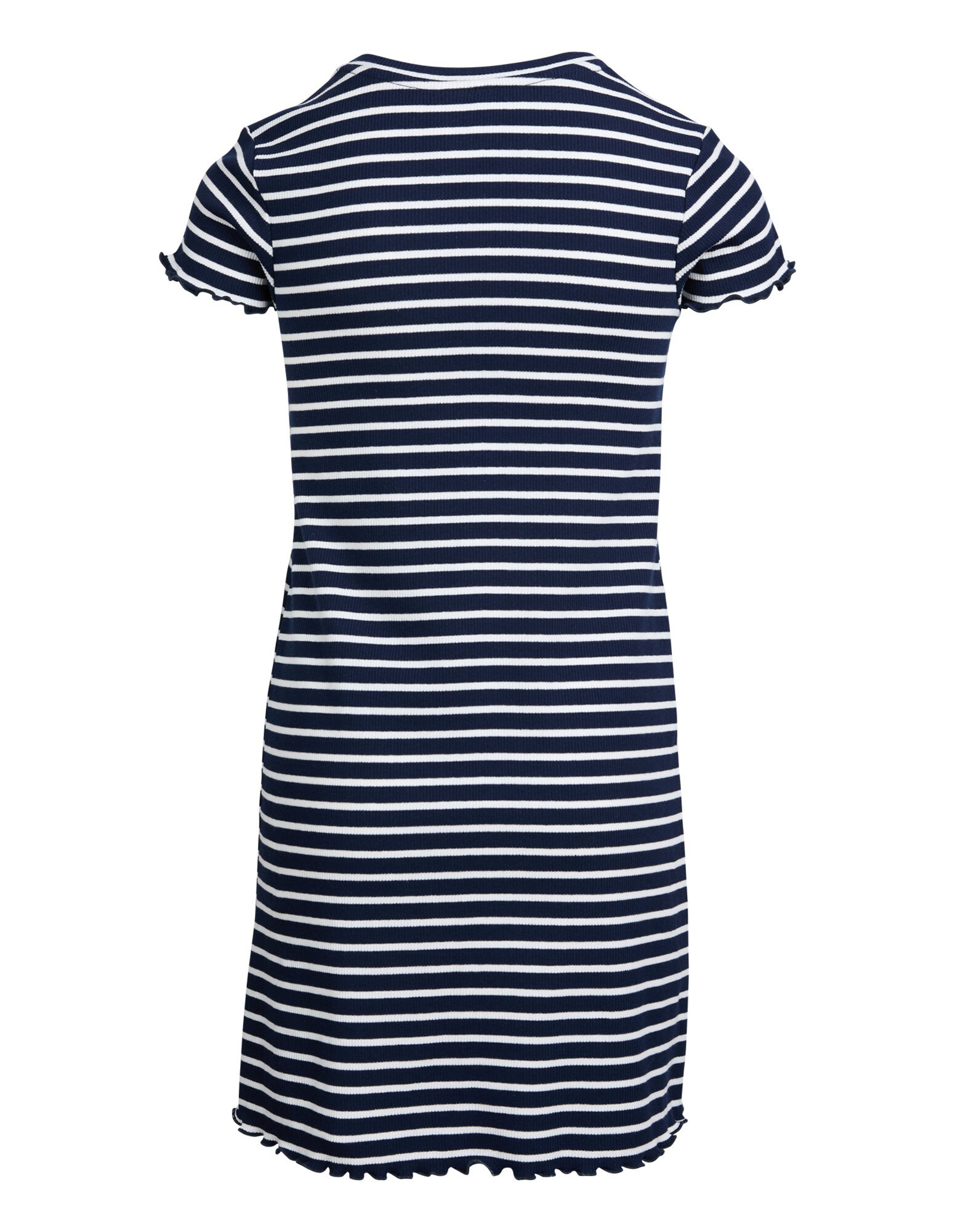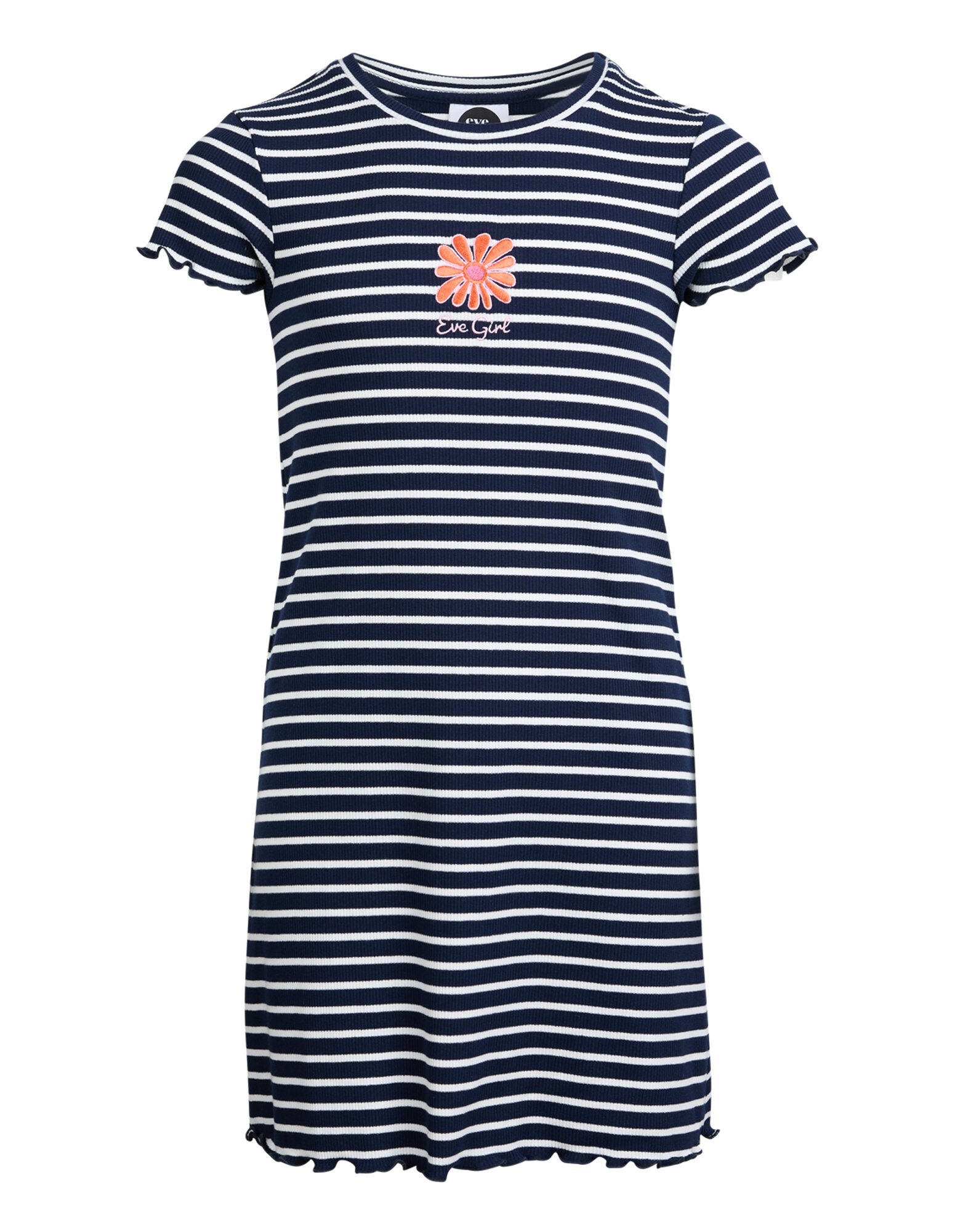 The Issy Rib Dress by Eve Girl is a summer wardrobe essential. Made from a soft, stretchy rib fabrication, this dress features an all-over stripe design and chest embroidery detail. Complete with a self fabric neck band and babylock detail on the hem and sleeve openings.