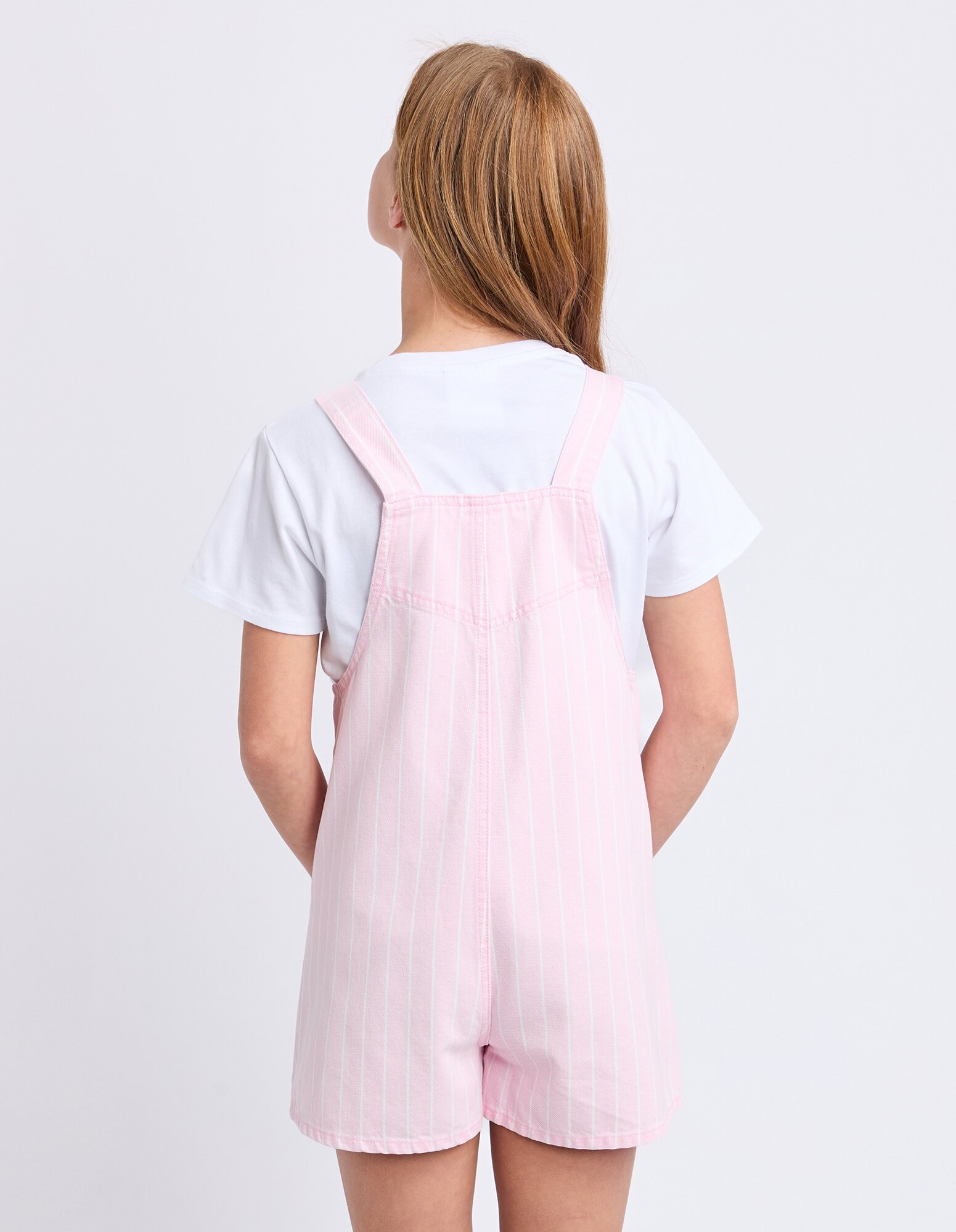 The Wilma Denim Playsuit by Eve Girl is a must-have this summer. Featuring a super cute, pink stripe denim fabric, this style has adjustable straps, front sailor pockets and twin needle stitching. Layer over any of our Eve Girl graphic tees for a perfect everyday look.