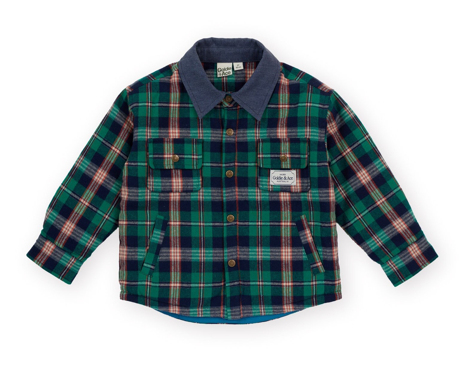 The Goldie + Ace Check Padded Shacked is lightly wadded and quilted for warmth. Designed shacket style, great for layering or on it's own