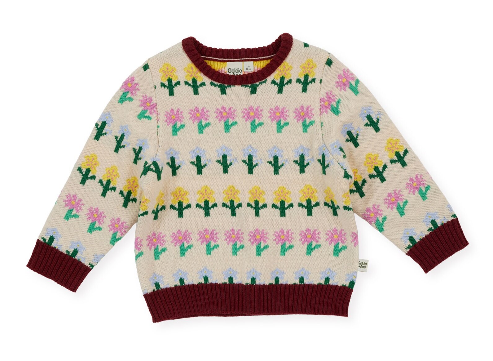 The Goldie + Ace Flower Garden Knit Jumper has a jacquard floral design
