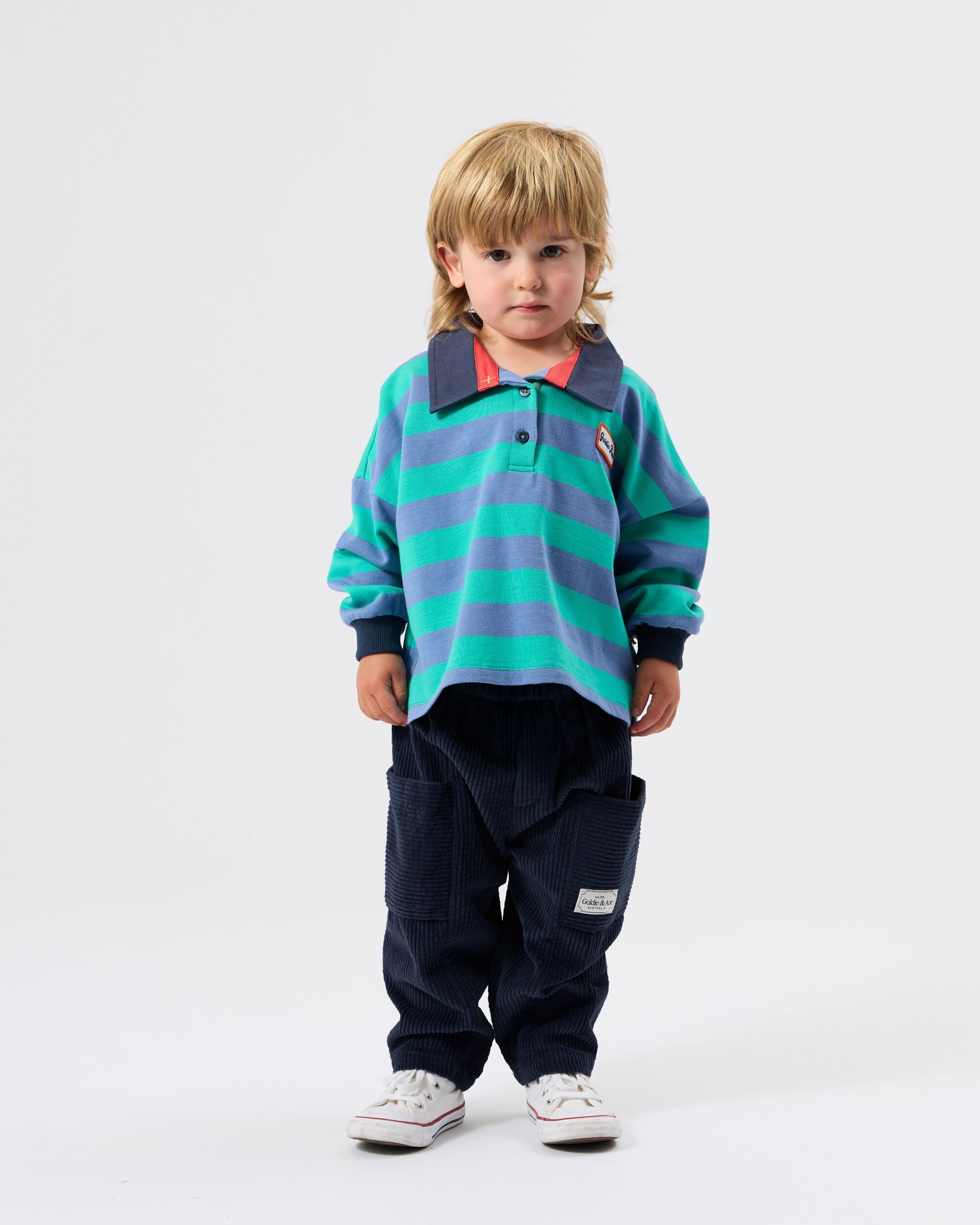 The Goldie + Ace Rugby Stripe Terry Sweat Top is made from light weight loop back terry fabric.