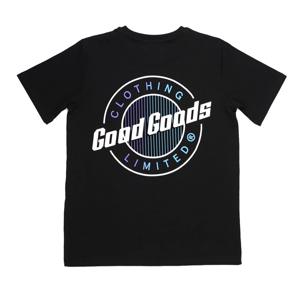 Uni-sex Tee with a label at bottom left hem and quality Print on front chest and back