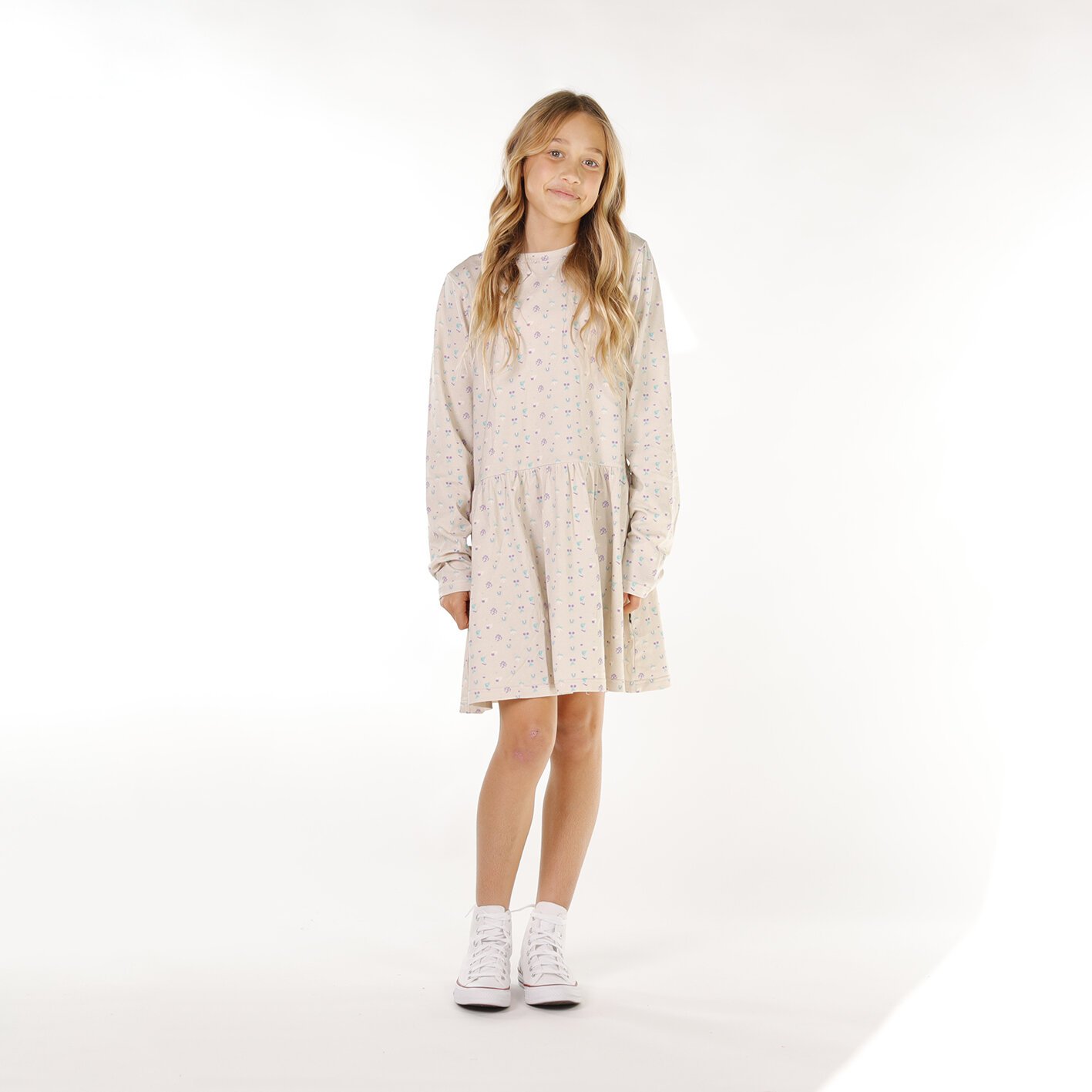 Say hello to the perfect everyday dress the Hello Stranger Ocean Monday Dress. The Dress features a fun chest print, long sleeves, and a flowy A-line skirt for all-day comfort and style. Made from soft cotton with a bit of stretch, it's ideal for cooler Autumn days — just add leggings and socks for extra warmth when winter rolls in.