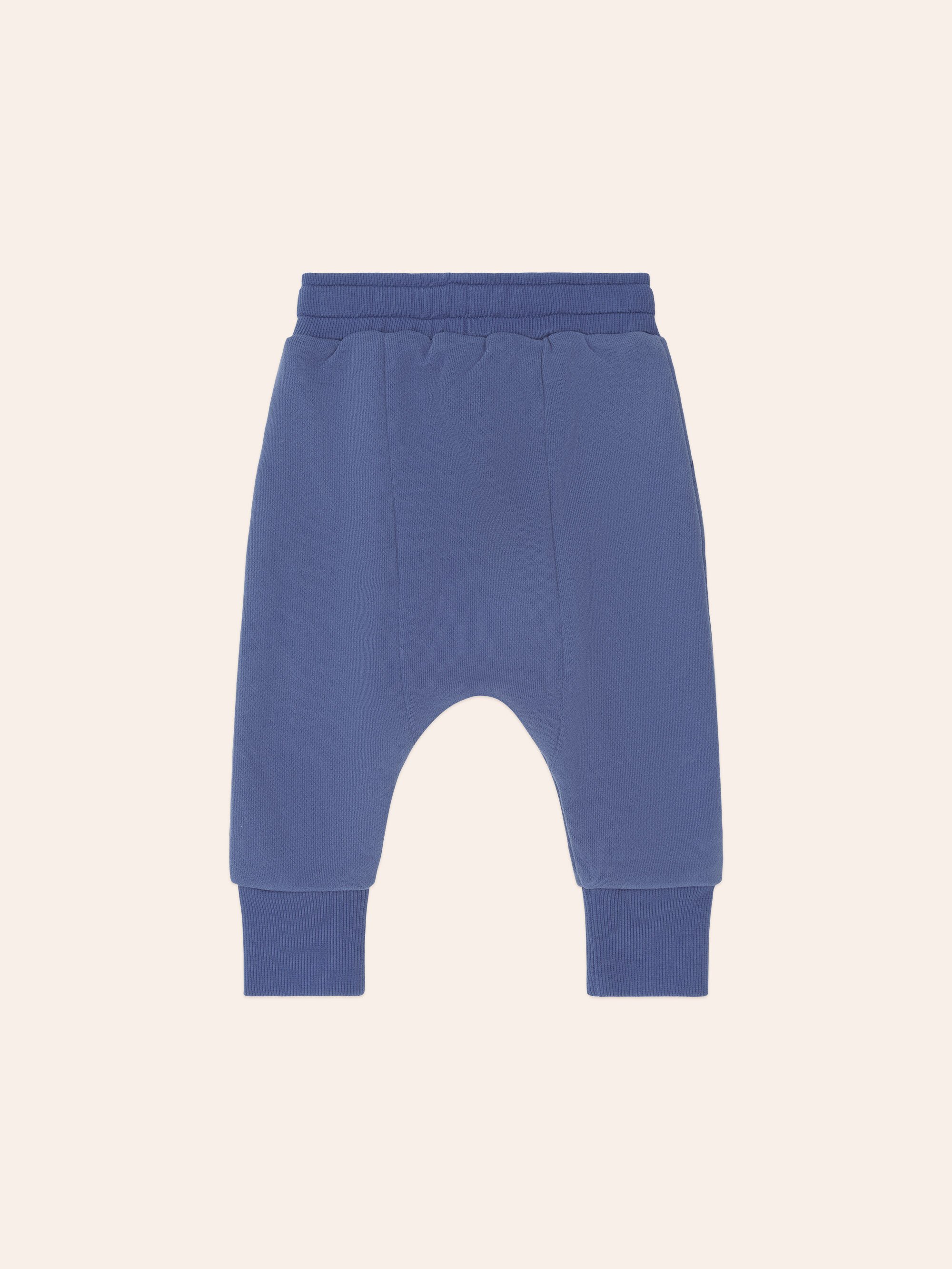 The 5 Pocket Blue Trackpants are a cushiony-soft pair of organic cotton pants, in a vintage-look, drop-crotch style. Made from terry towelling, these pants truly go with everything. Huxbaby designed them with an adjustable drawstring, a soft waistband and five extra roomy patch pockets (the perfect place for stashing treasures).