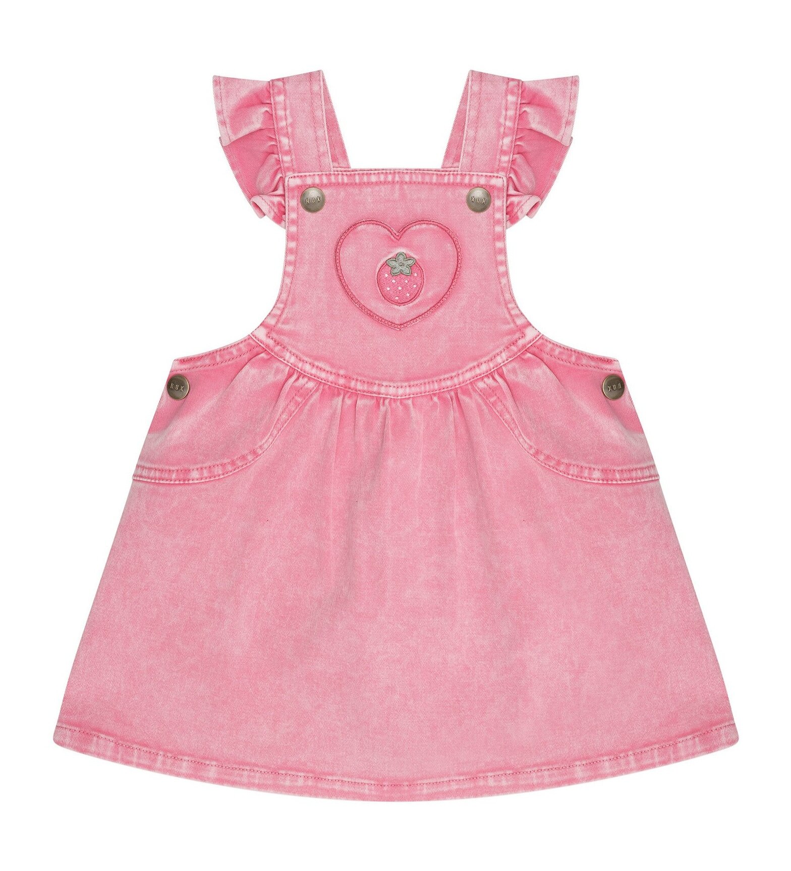 With sweet strawberry patch to front pocket and easy adjustable snaps on shoulder straps