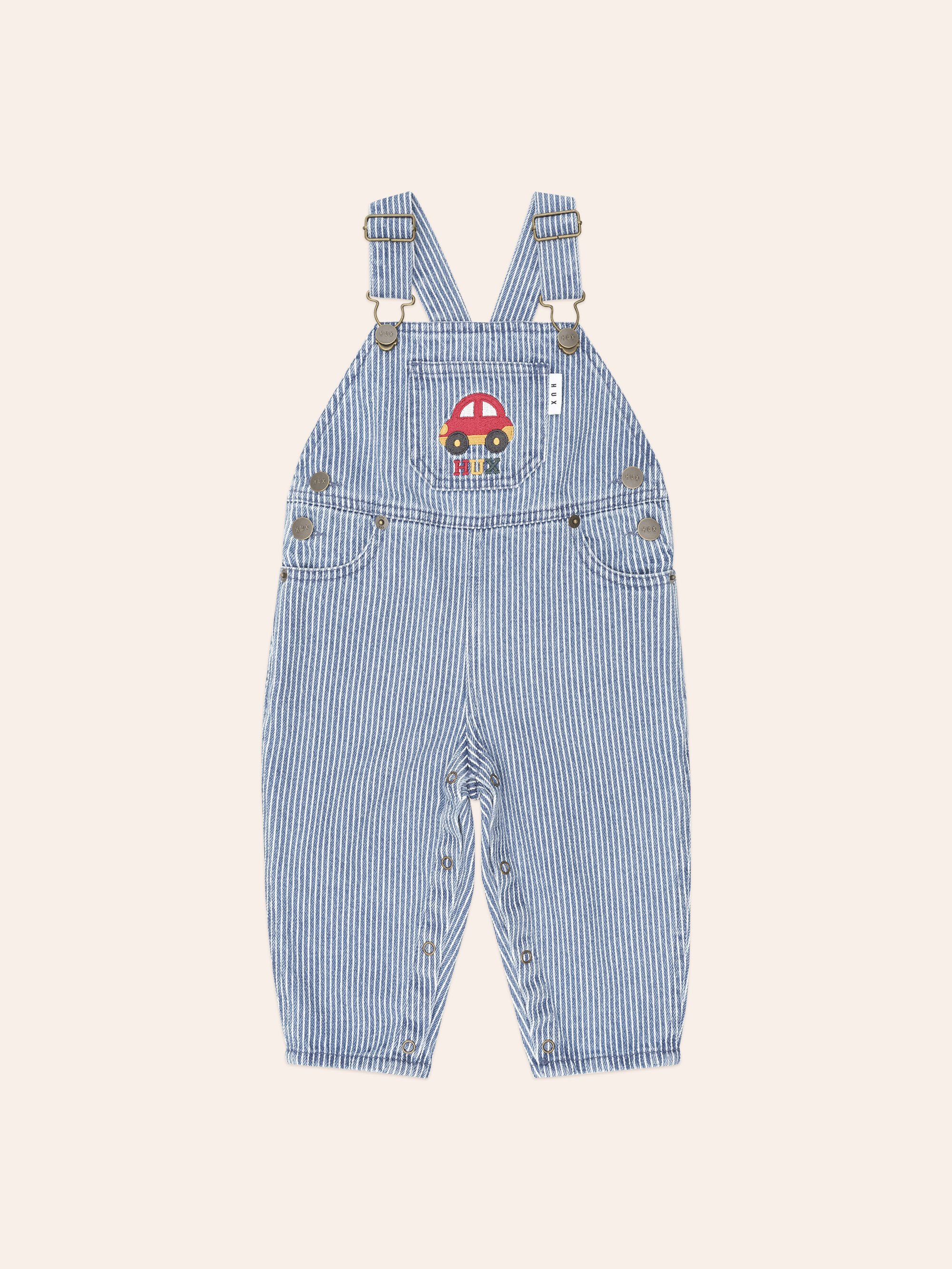The Huxbaby Car Denim Stripe Overalls are a classic pair of 90s striped overalls, in a wide leg vintage cut. Made from the softest denim, they feature adjustable straps for comfy wear, front and back pockets perfect for stashing treasures in, custom car embroidery, and snap buttons for easy dressing. Style them alone or over a tee.