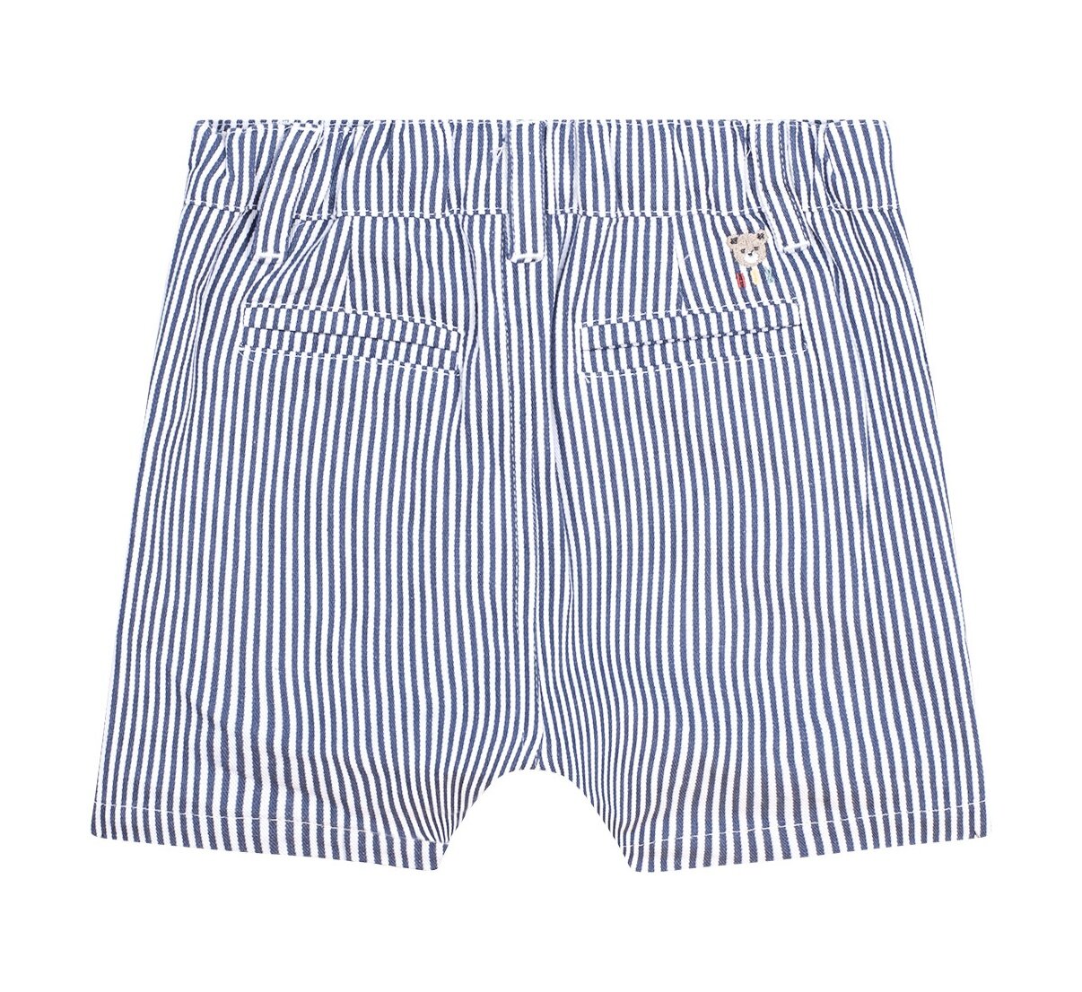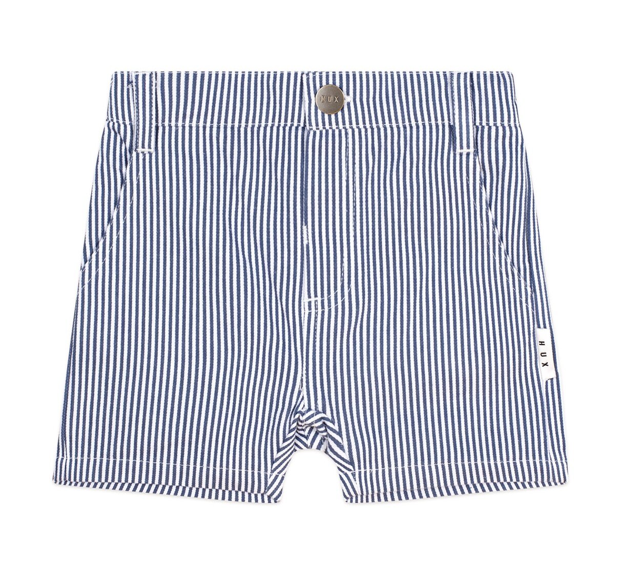 The Huxbaby Classic Stripe Chino Short is the perfect pinstripe chino short for warm weather occasions. Dress them up or down. Made from a soft cotton twill, they feature a peeping Huxbear embroidery on the back and an internal button waistband and belt loops for adjustable waist. Zipper fly on sizes 4 and up. 100% cotton Navy pinstripe Designed in Melbourne