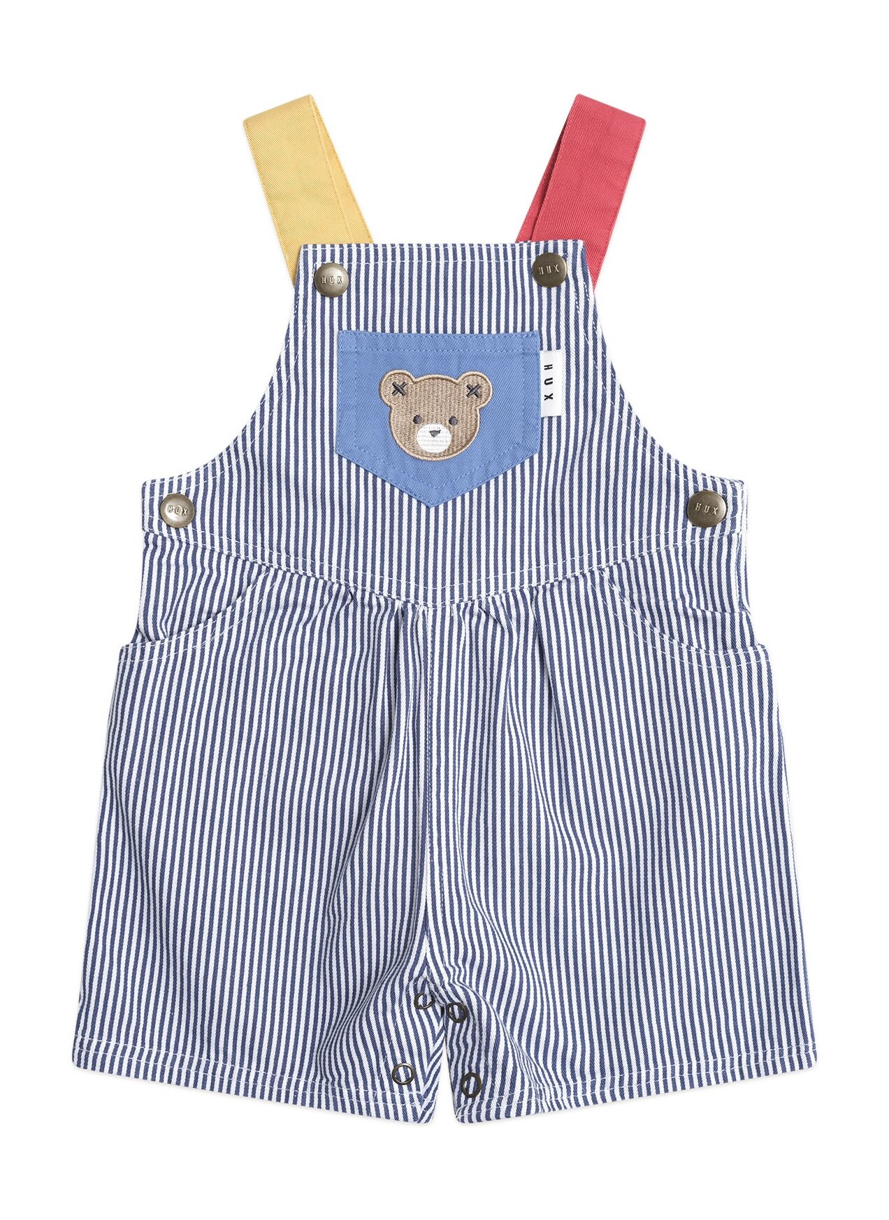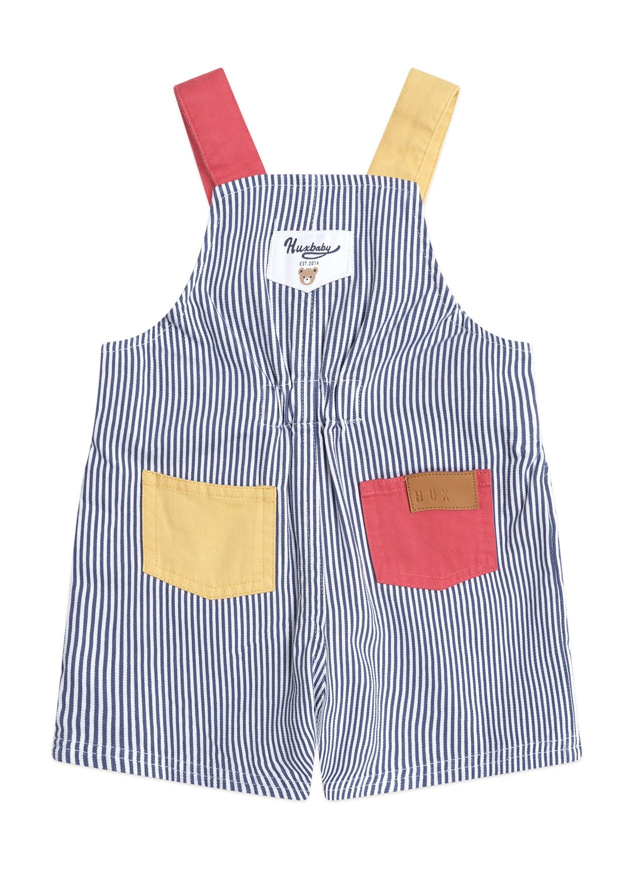 The Huxbaby Classic Stripe Short Overall are the perfect pinstripe chino pant for any occasion. Dress them up or down. Made from a soft cotton twill, they feature Huxbaby's iconic peeping Huxbear embroidery on the back and an internal button waistband and belt loops for adjustable waist. Zipper fly on sizes 4 and up.