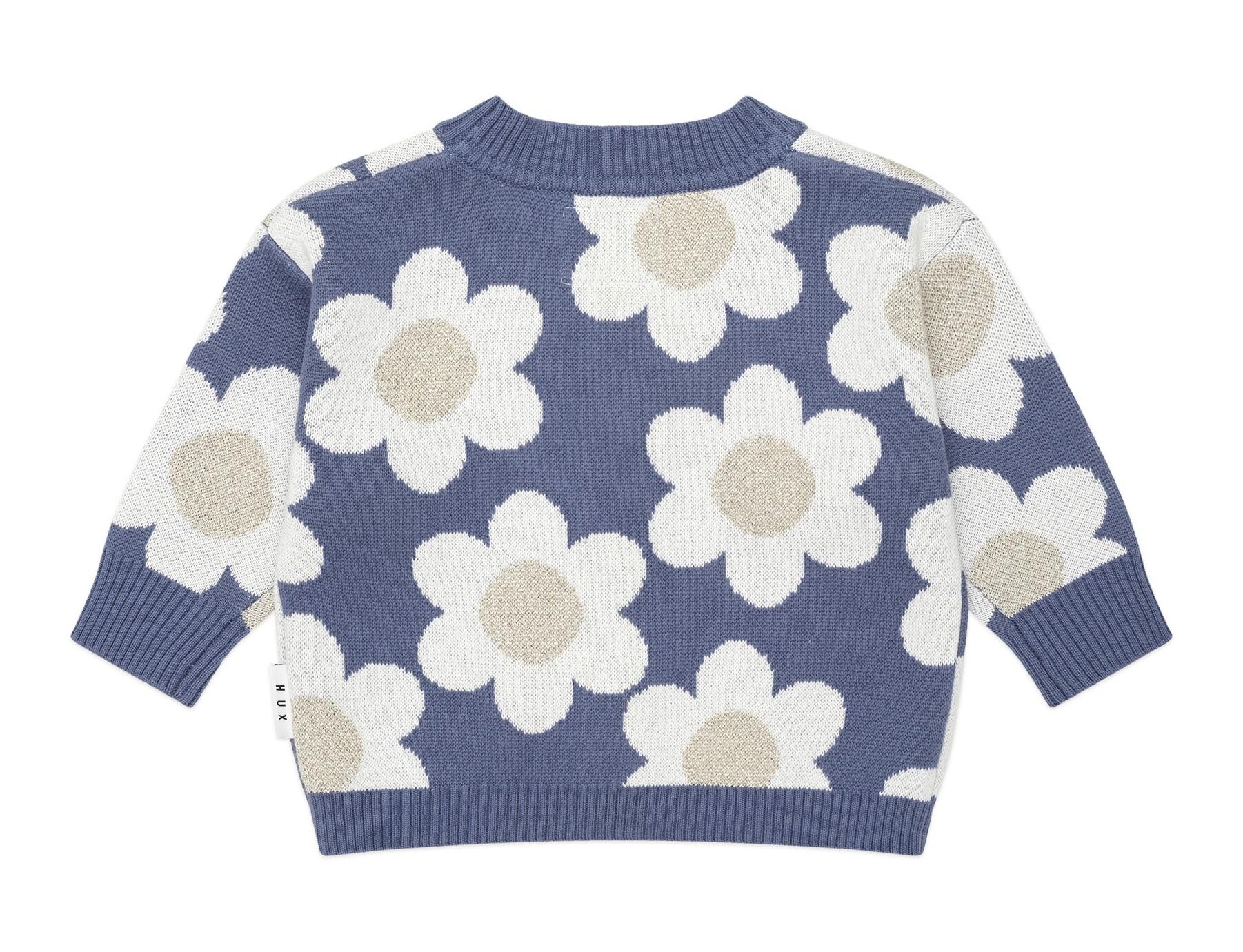 If the playground is a catwalk, this Huxbaby Daisy Boxy Cardi in midnight blue is the star of the show. Made from luxuriously thick jacquard knit organic cotton, it has an all over daisy pattern in sparkly gold and big buttons for easy layering.