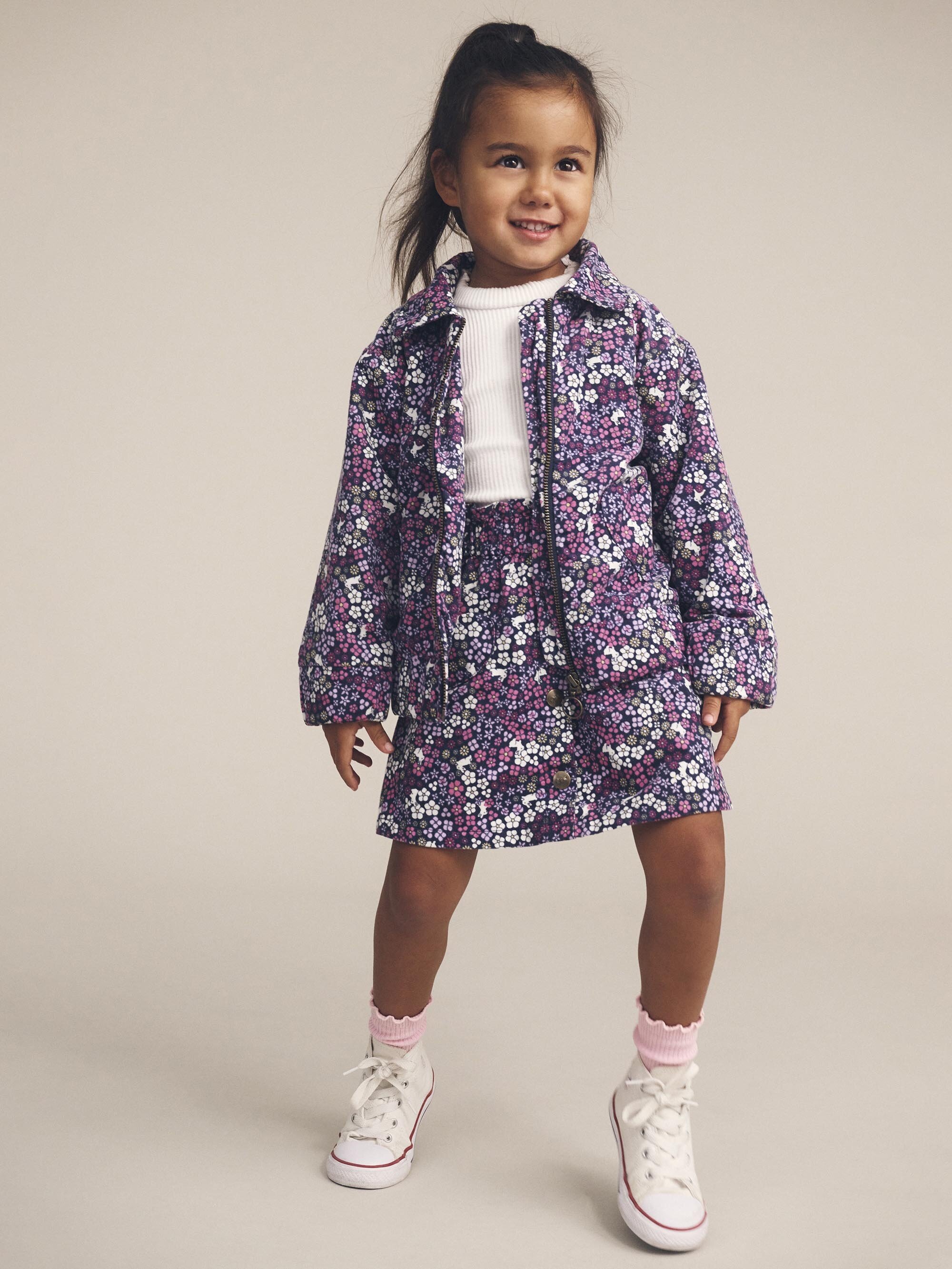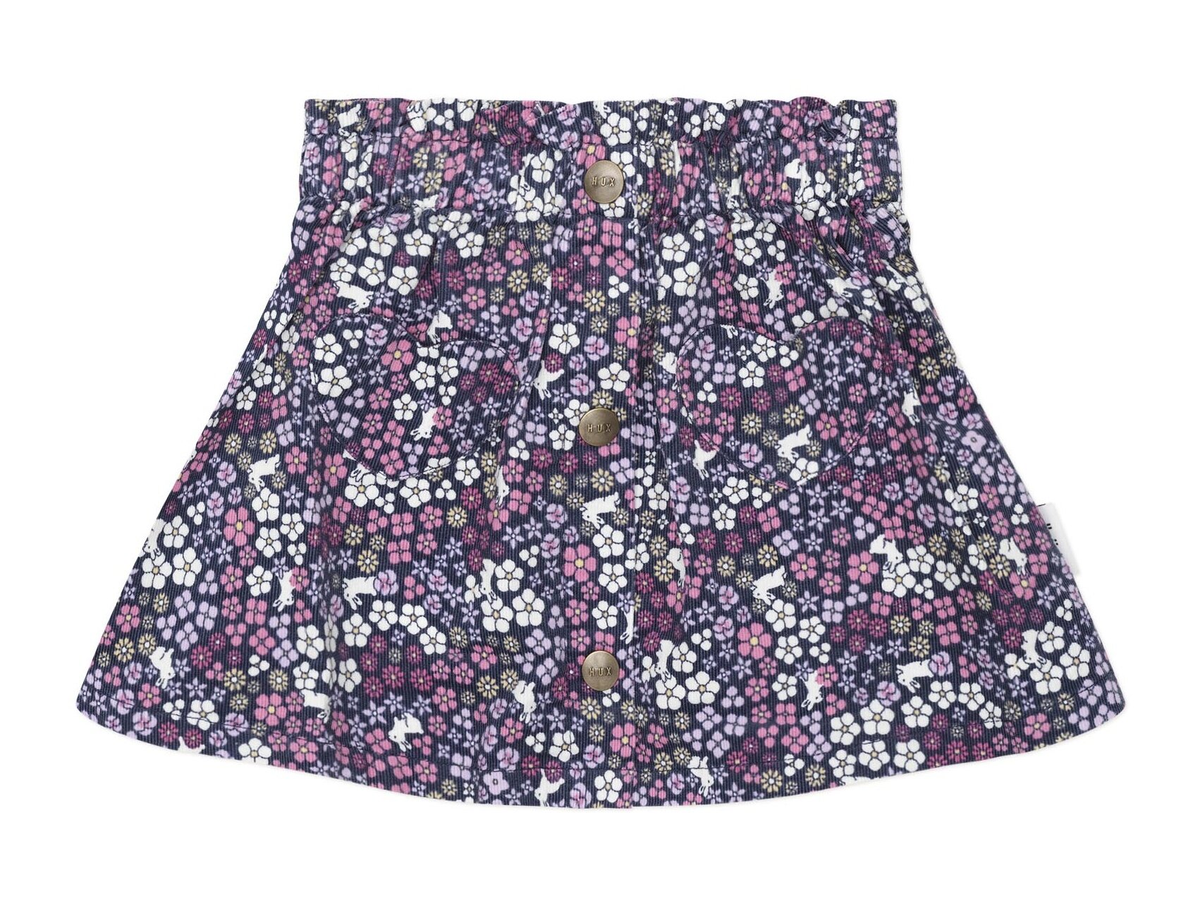 A mini for your mini. This 90s style Huxbaby Flower Garden Cord Skirt is made from a super soft, lightweight cotton cord. It features sweetheart-shaped front pockets and a soft, stretchy waistband to keep tummies comfy all day long. Wear it over tights or on its own, for play dates or special occasions.