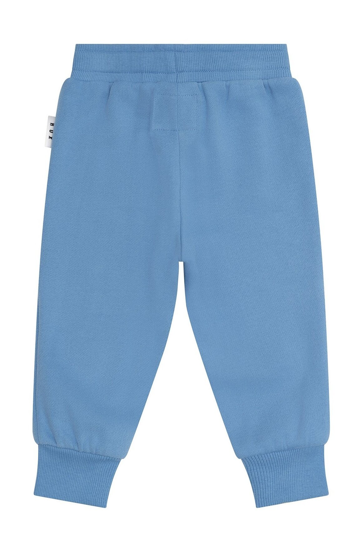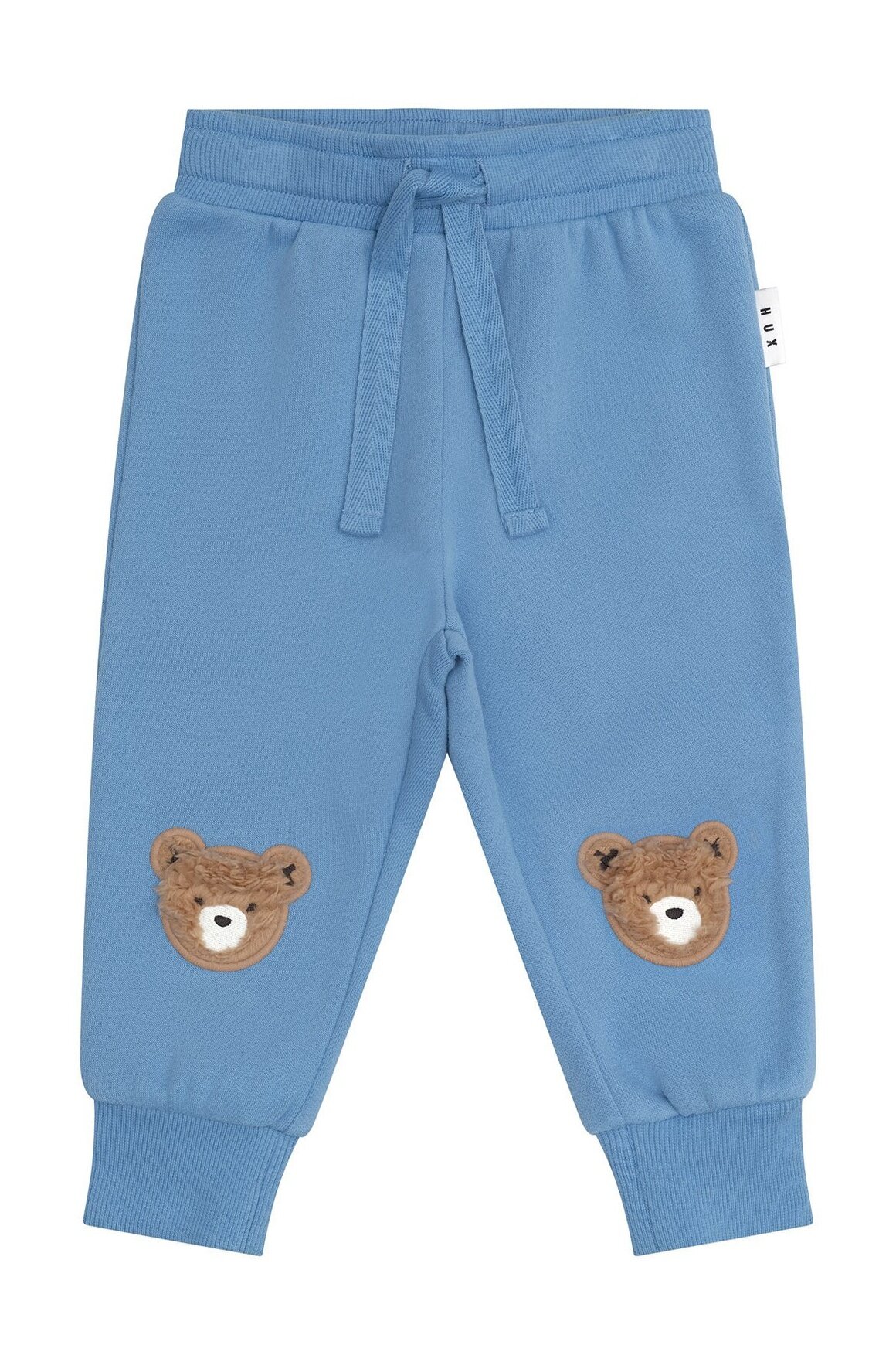 Sporty, premium organic cotton fleece Huxbaby retro track pant with Hux's signature fur bear applique on knees.