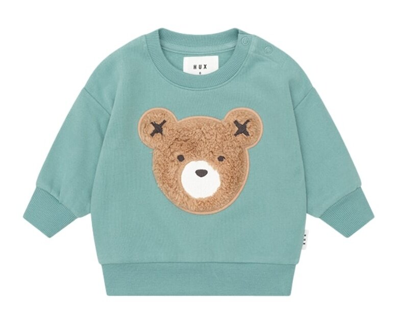 Stay warm and cosy in the Huxbaby Furry Huxbear Sweatshirt. Made from fluffy organic cotton, it feels like having your best friend by your side thanks to the tummy-sized Huxbear embroidery always within arm’s reach. Baby sizes include stainless steel back snaps for easy dressing. Match it with our Stone Blue Furry Huxbear Track Pant for a co-ord look.