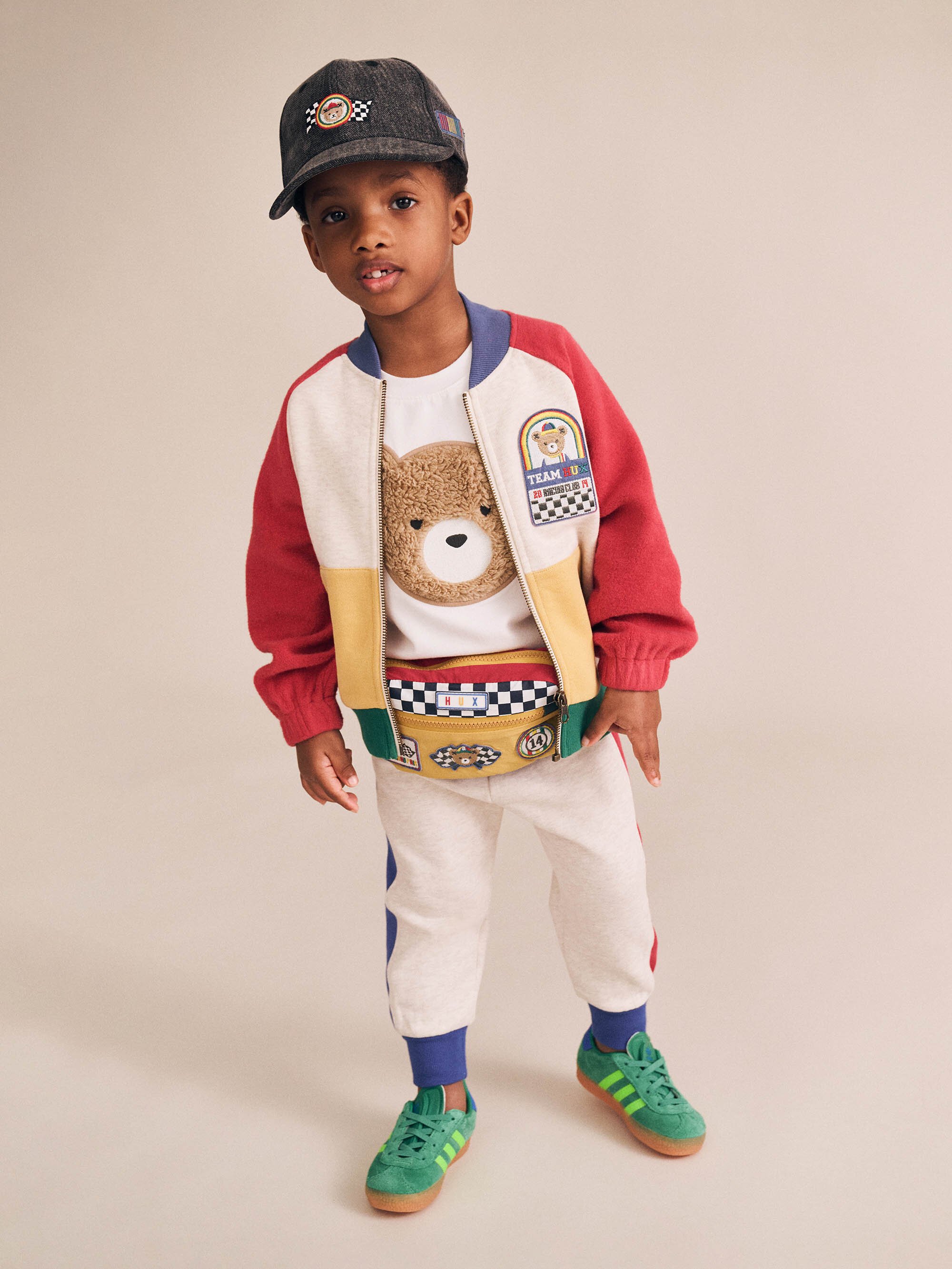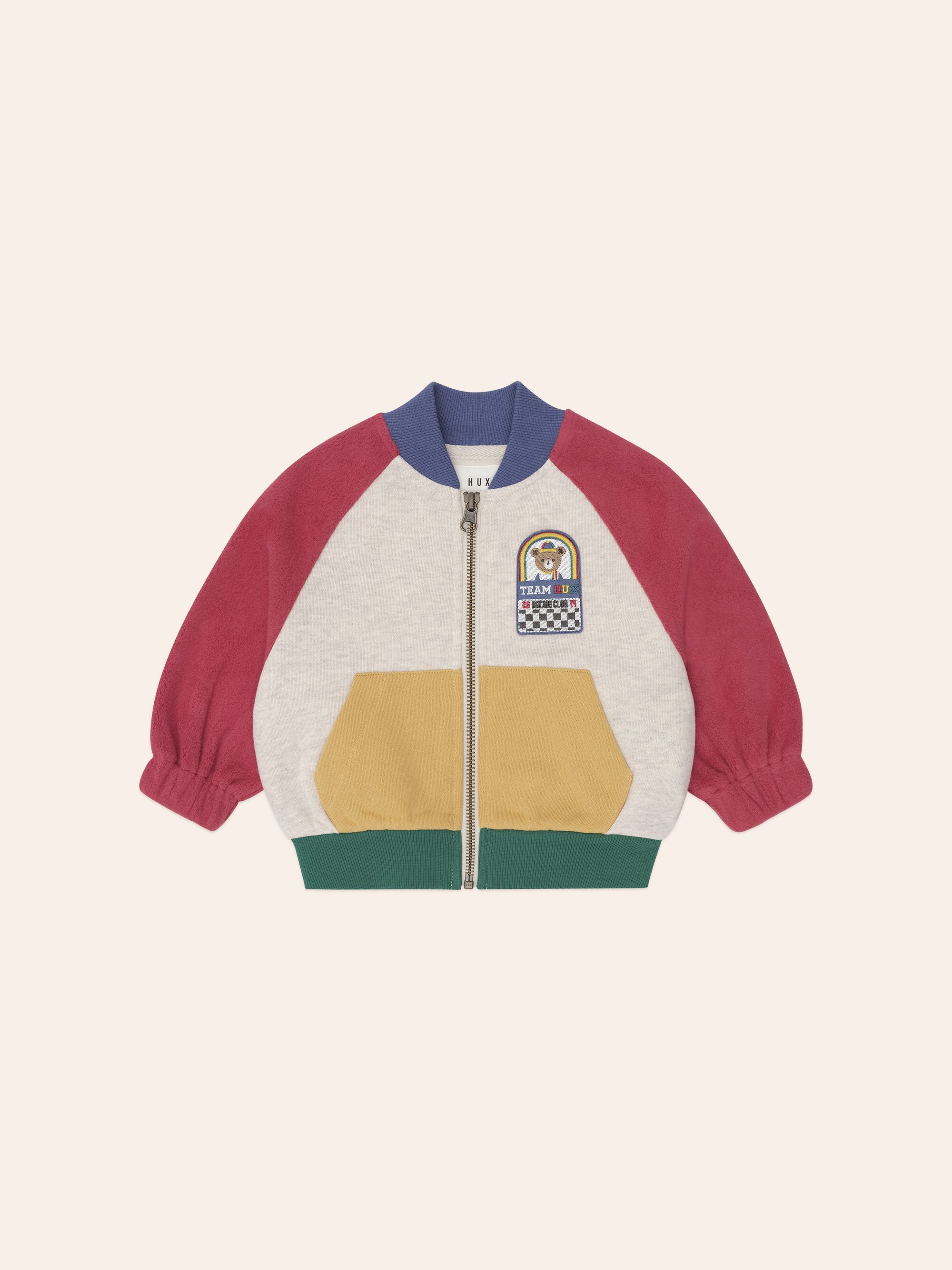 The Huxbaby Hux Colour Block Zip Sweat is a ‘goes with everything’ essential hoodie. Features pockets perfect for stashing snacks in. Made from incredibly cosy organic cotton fleece in Huxbaby's colour blocked design, it has an oversized slouchy fit, preppy collar, embroidery on the chest, and handy pockets perfect for stashing snacks in.