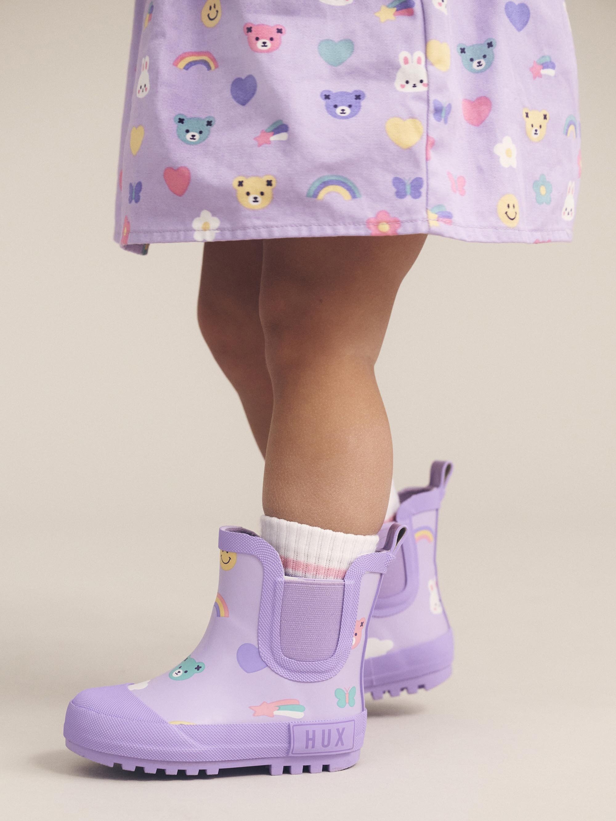 Huxbaby Emoji Rainboots are made from 100% rubber and comfy poly/cotton blend lining, featuring all over emoji print. Designed in Australia with a rubber pull tab and a grip sole, these rainboots come in a dual size to give all the room they need for thick socks and allow for growth.