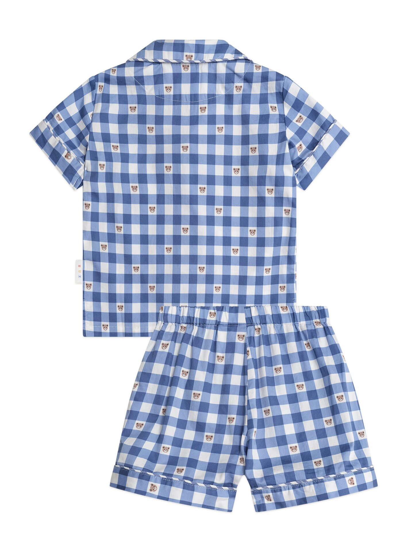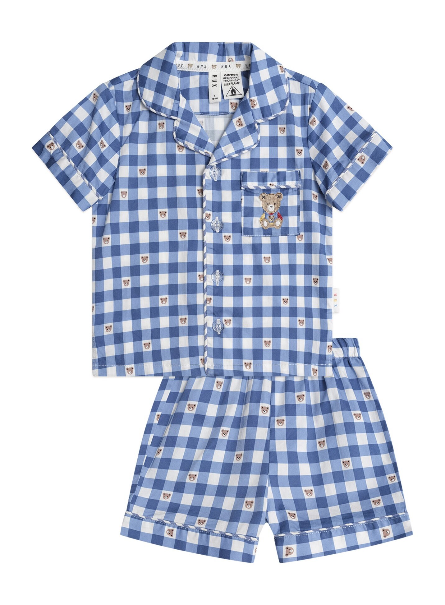 Made from soft cotton sateen, the Huxbaby Huxbear Check PJs feature an all over custom navy check print, a soft and stretchy waistband to keep little tummies comfy and a special front pocket with Huxbear embroidery.
