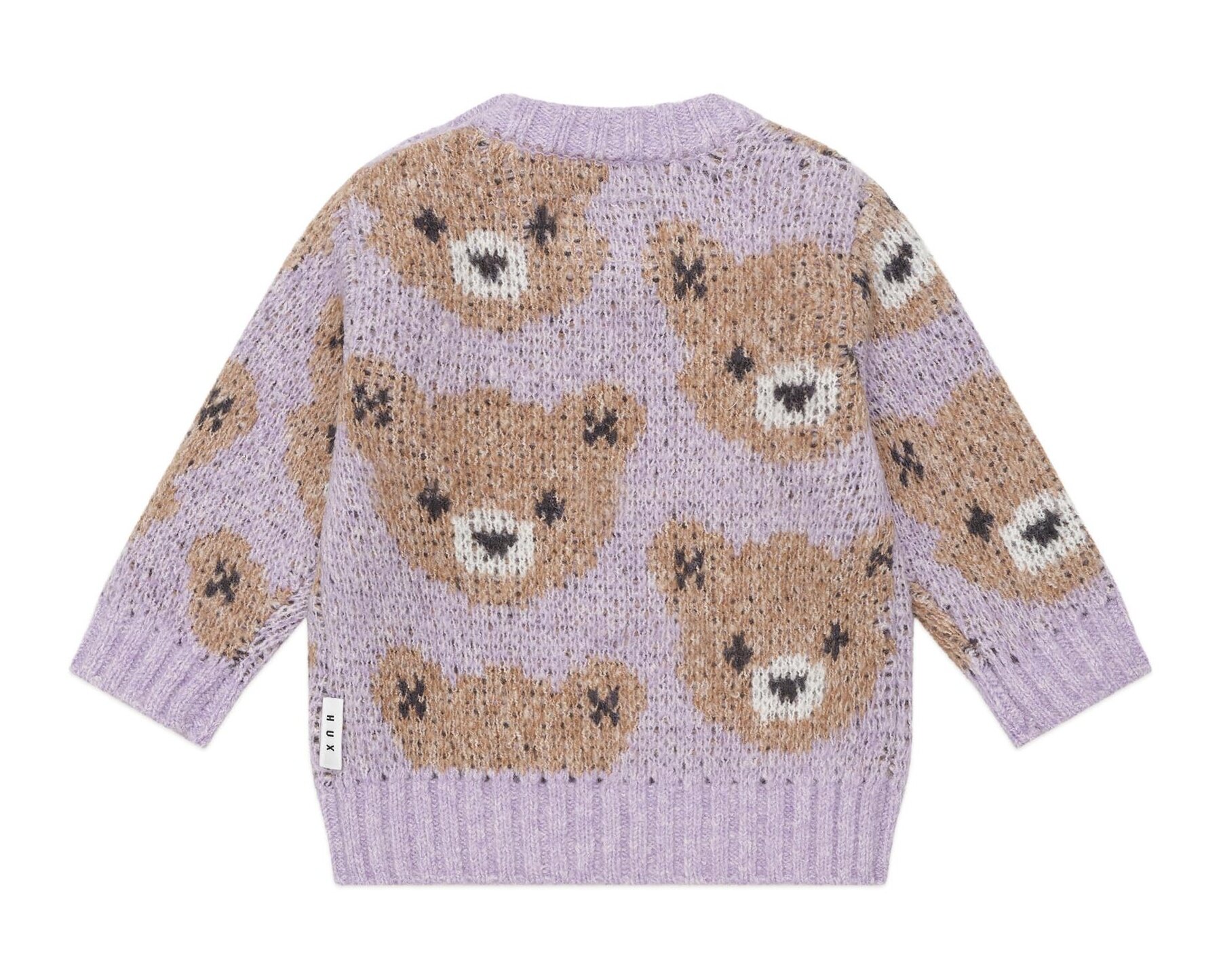 If Huxbear could hug, it would feel like wearing this orchid Huxbaby Huxbear Knit Jumper. This luxuriously thick jacquard sponge knit jumper is the ultimate cosy layer. Warm enough to get you through the coldest months, it features an all over Huxbear pattern and shoulder buttons in baby sizes.