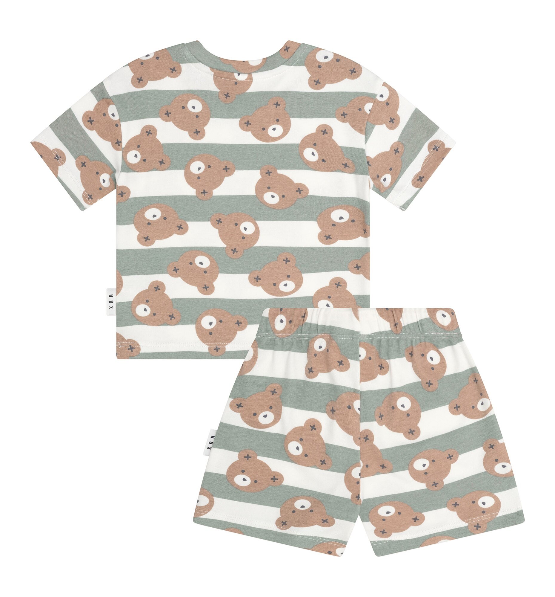 Super soft, premium organic cotton pyjama set in all over Huxbear stripe print that little ones will love. Soft, elasticised waistband that's gentle on little tummies.