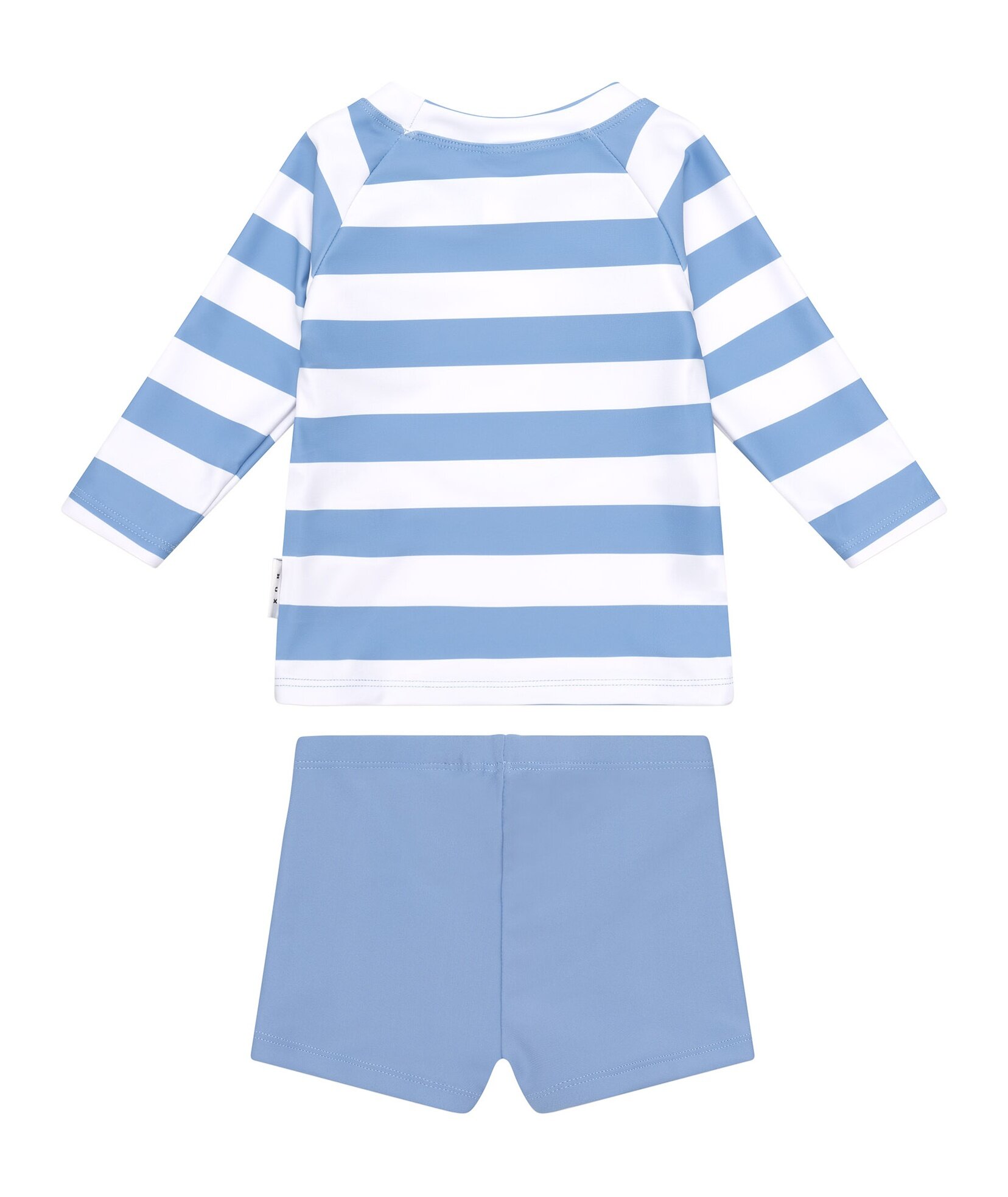 2pc stripe rashguard set with Huxbear print and fitted shorts