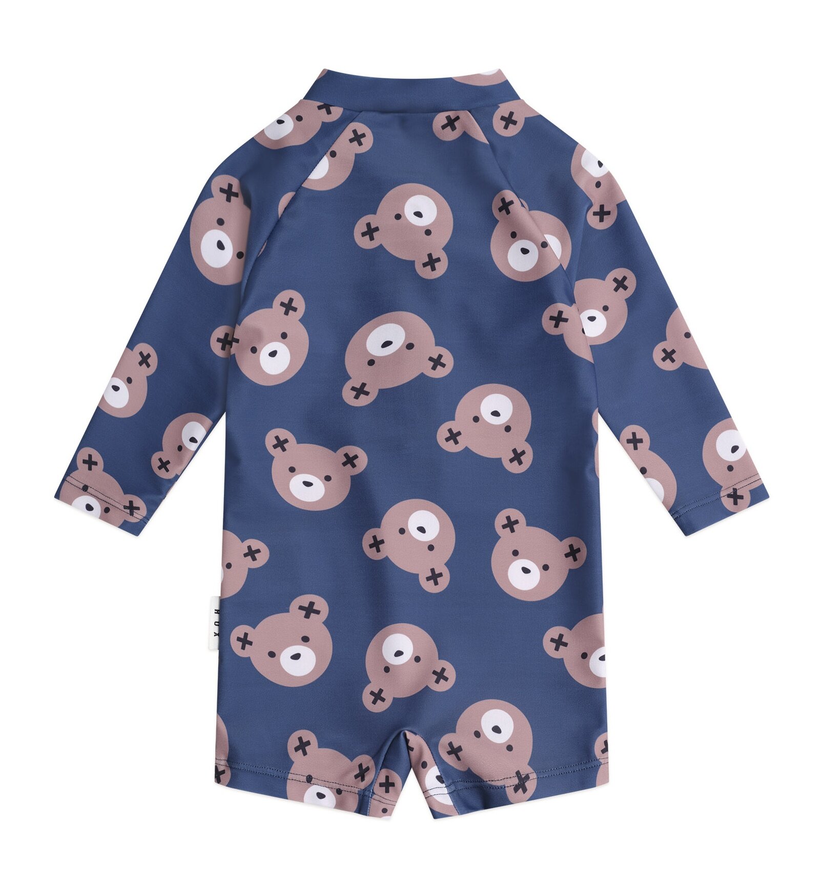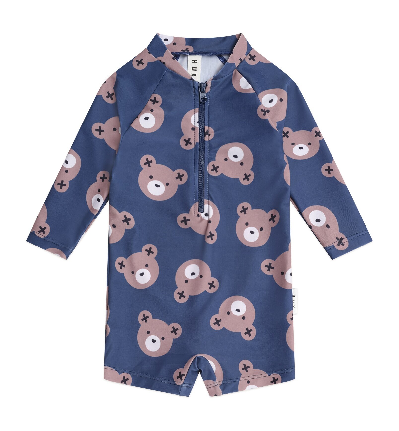 Getting ready for the beach is easy as in the Huxbaby Huxbear Swimsuit Shortie. This cute swimsuit shortie is rated UPF 50+, which is the highest achievable sun protective rating for fabrics. Consciously crafted with recycled polyester, it features a zip for speedy changes, long sleeves for added protection and cute print, just for fun.