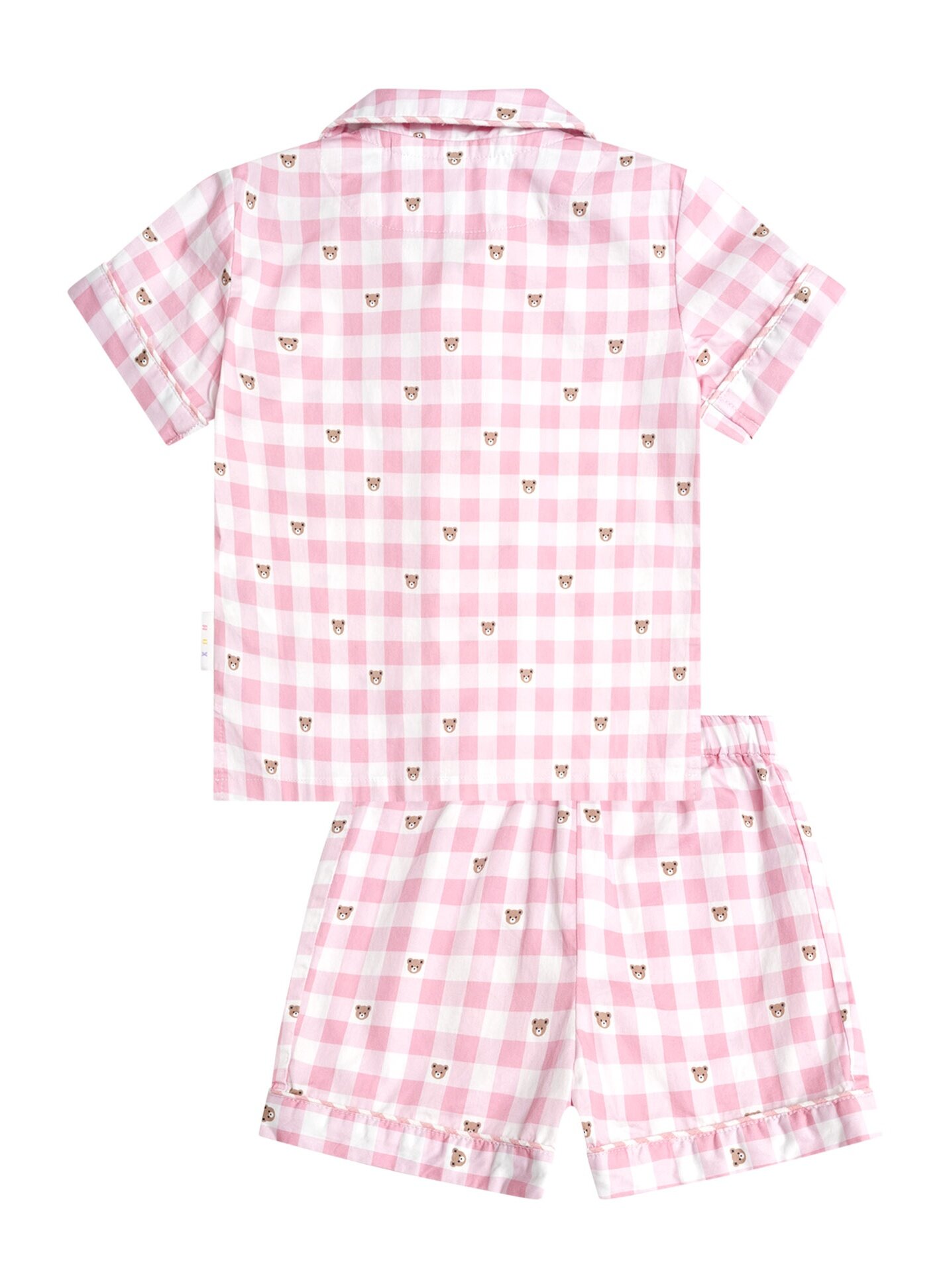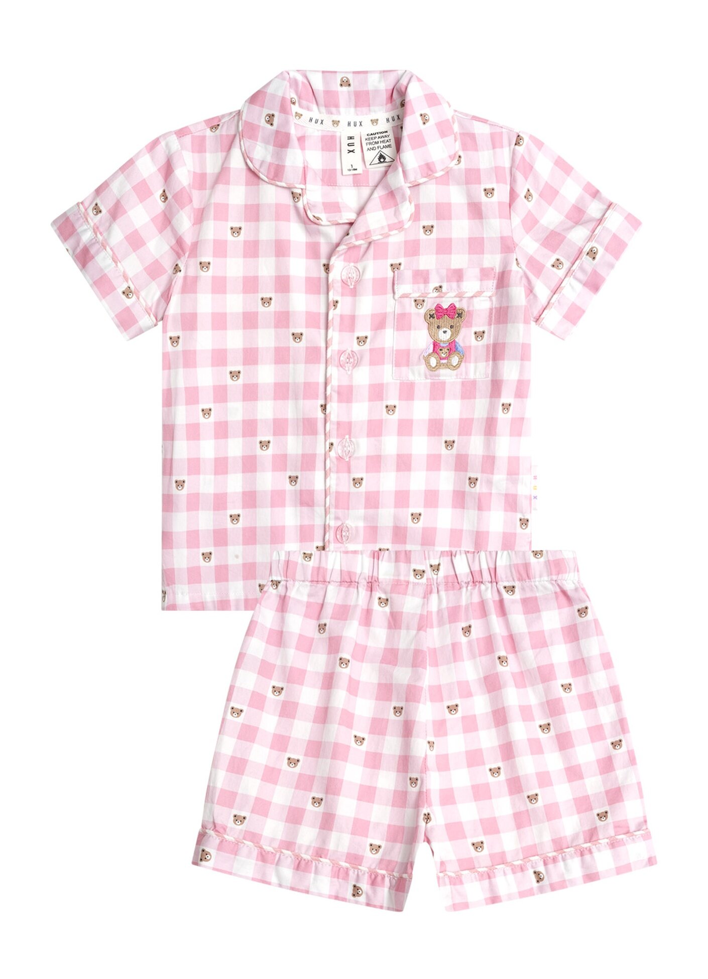 Made from soft cotton sateen, the Huxbaby Huxette Check PJs feature an all over custom strawberry check print, a soft and stretchy waistband to keep little tummies comfy and a special front pocket with Huxbear embroidery.