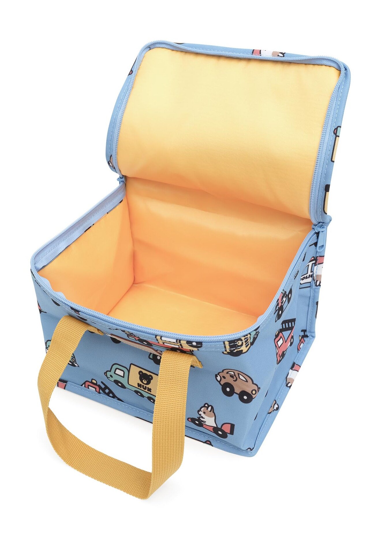 An insulated soft lunch box made for meals on-the-go designed by Huxbaby. This snack buddy has carry handles and twin zippers so hungry hands can grab and open with ease. The fridge-effect fabric keeps snacks, sandwiches and lunch foods yummy.