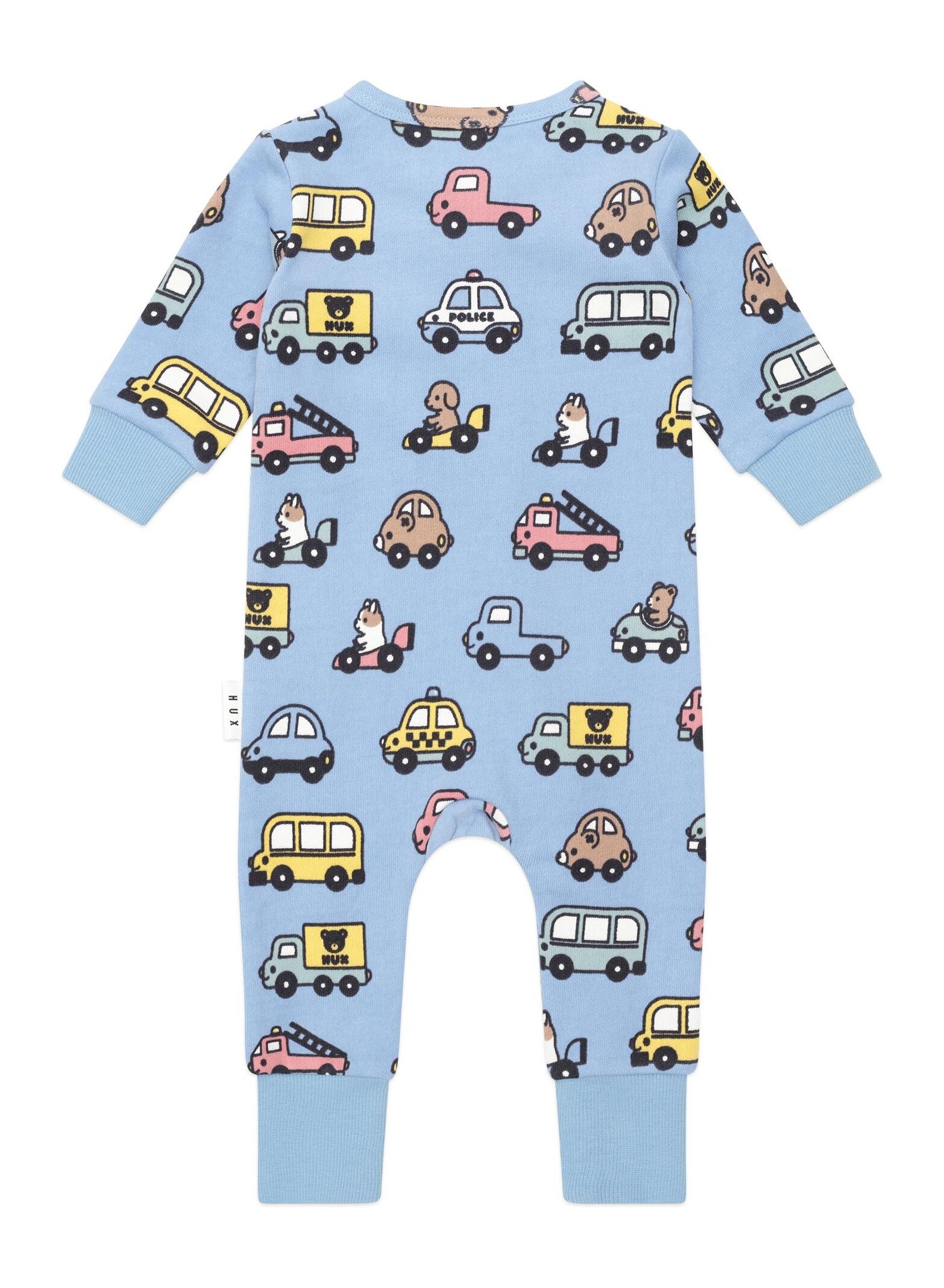 The terry-towelling Huxbaby Huxmobile Romper you’ll dress them in day in and day out. This cushiony-soft organic cotton fabric feels like a comforting cuddle on baby’s delicate skin. It features a full length, two-way zipper for easy nappy changes and a safety fold zip for peace of mind.