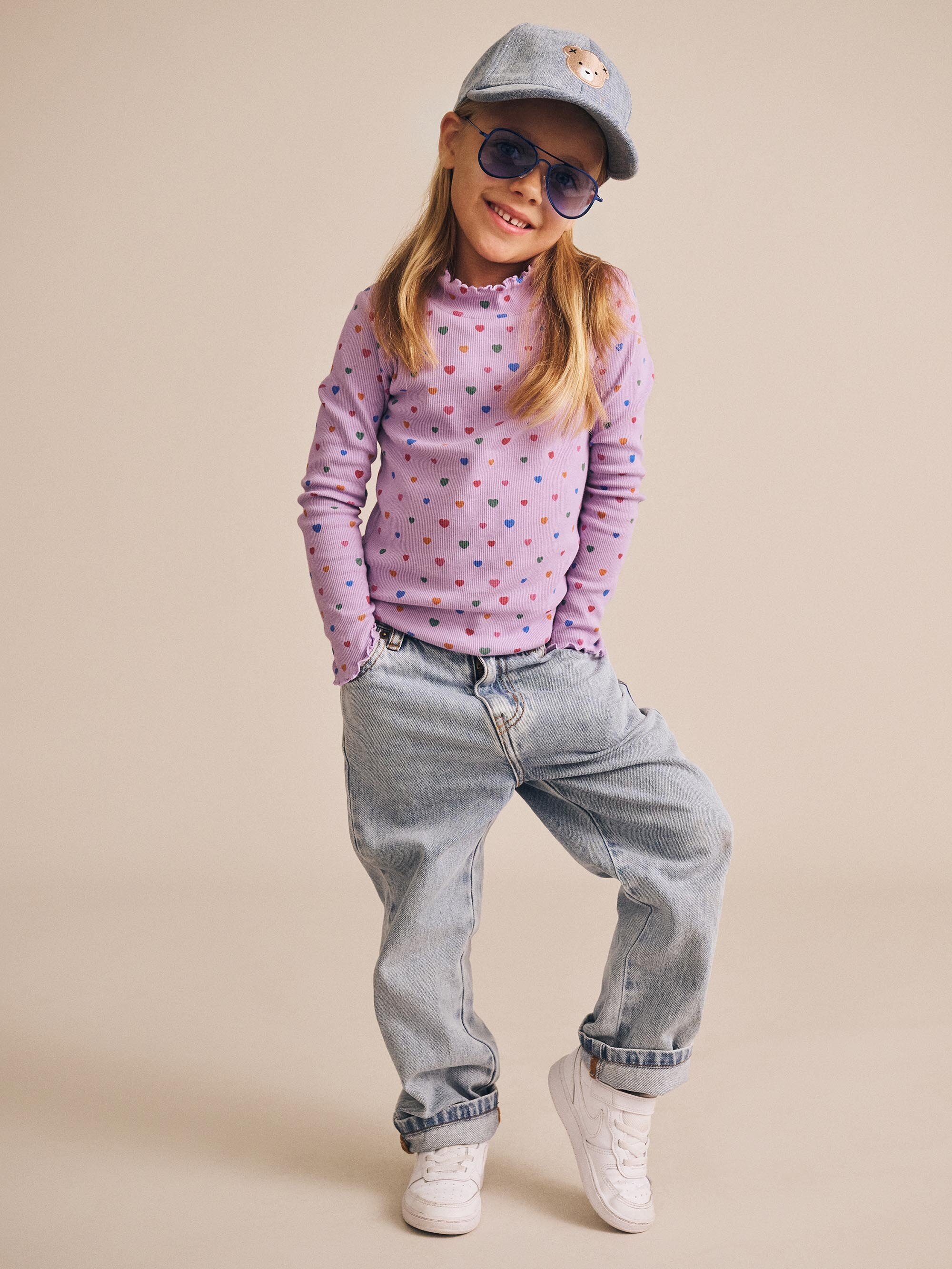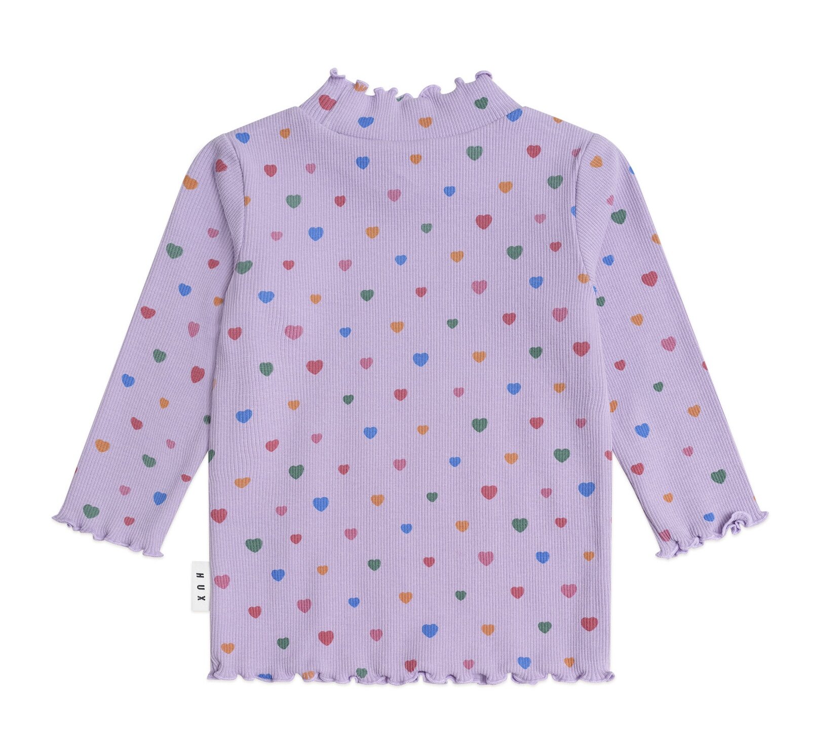 The Huxbaby I Heart Cake Rib Skivvy is a versatile layering piece covered in colourful heart sprinkles. This long-sleeved top is made from deliciously textured ribbed cotton and features a sweet lettuce edge detail to complete the look. A true wardrobe essential. So comfy, and so much fun to wear!