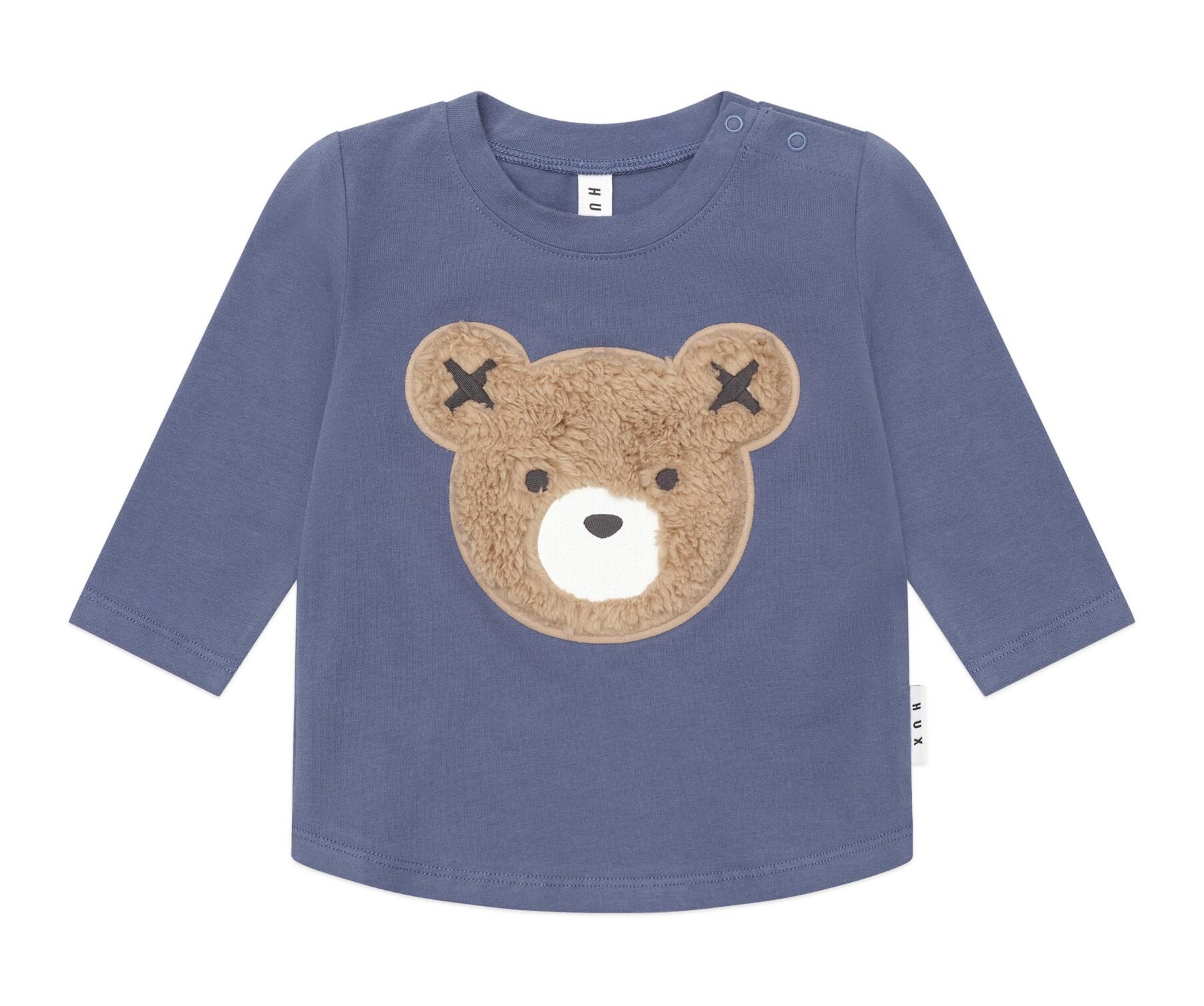 The Huxbaby Midnight Furry Huxbear Top is a long-sleeved round neck top in midnight blue. Made from cloud-like organic cotton, it features a tummy-sized Huxbear embroidery in the softest furry fabric. Bound to become their new everyday favourite, baby sizes include stainless steel shoulder snaps for even easier dressing.