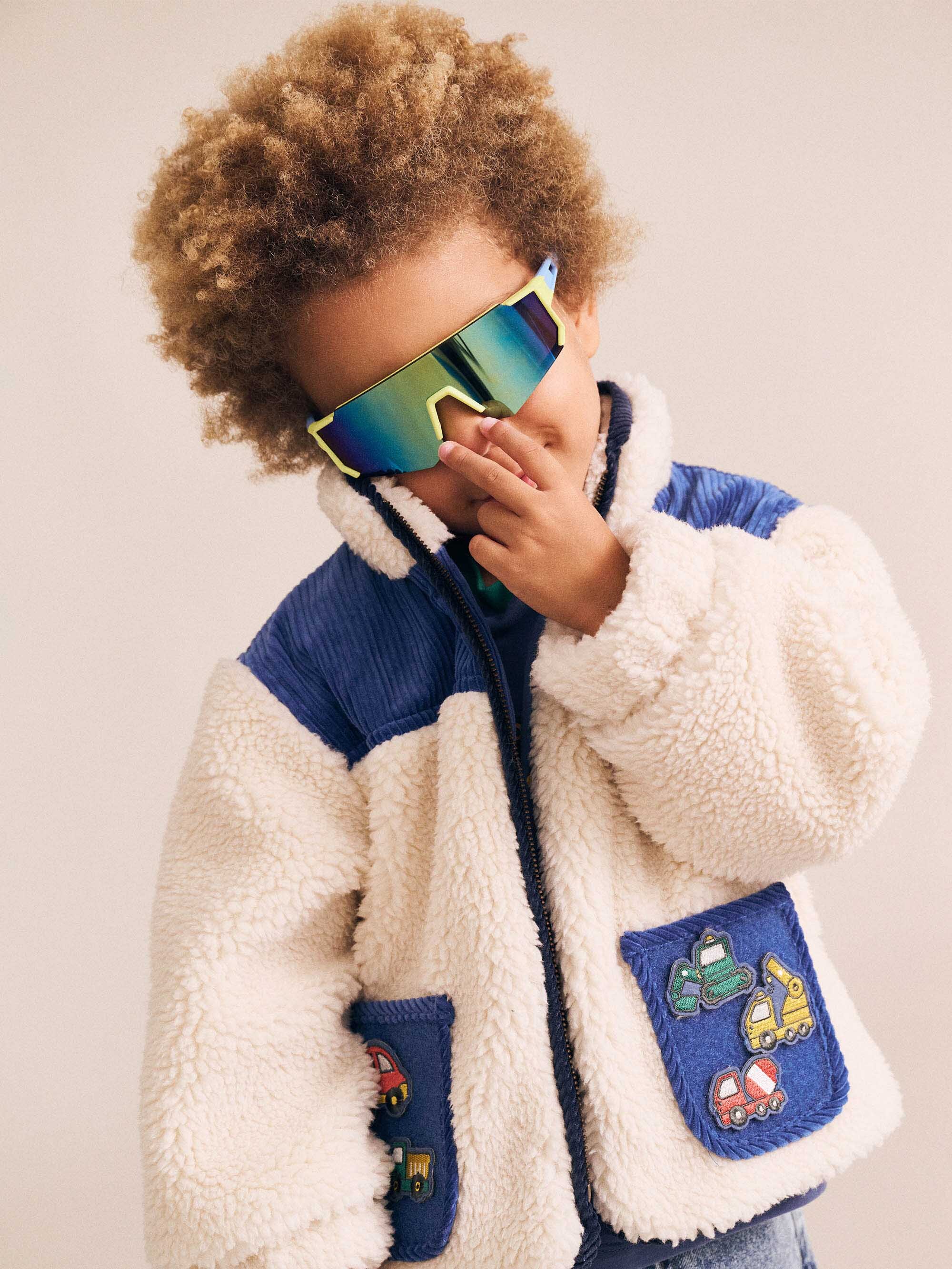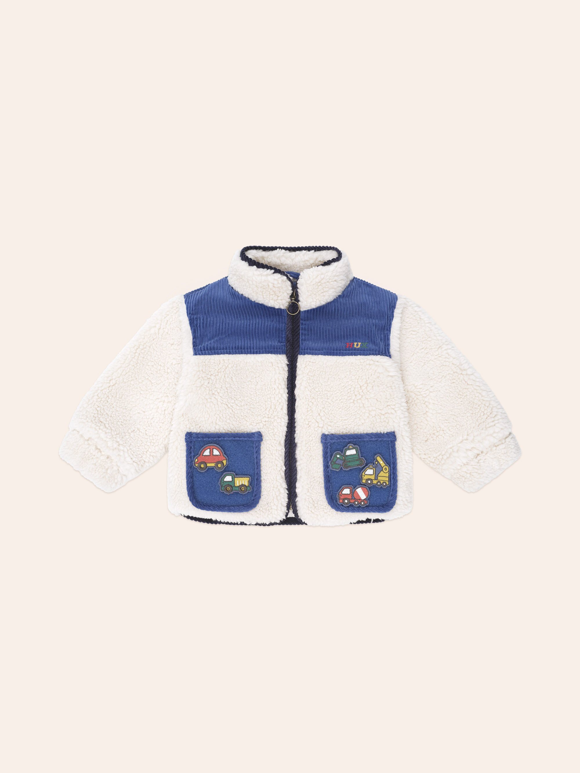 Meet your new favourite layering piece, the Huxbaby Patches Cord Sherpa Jacket. This scrumptiously soft and fluffy sherpa jacket features colour blocked panelling, deep pockets, and removable patches to play with. The perfect in between weather cover up.