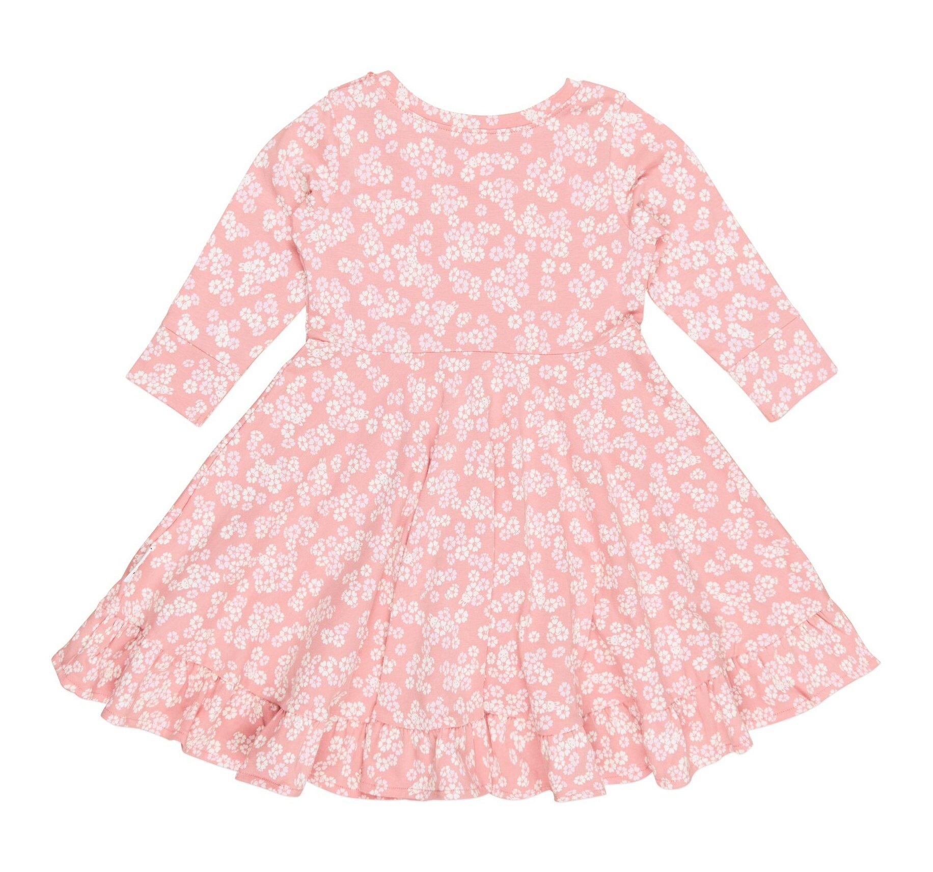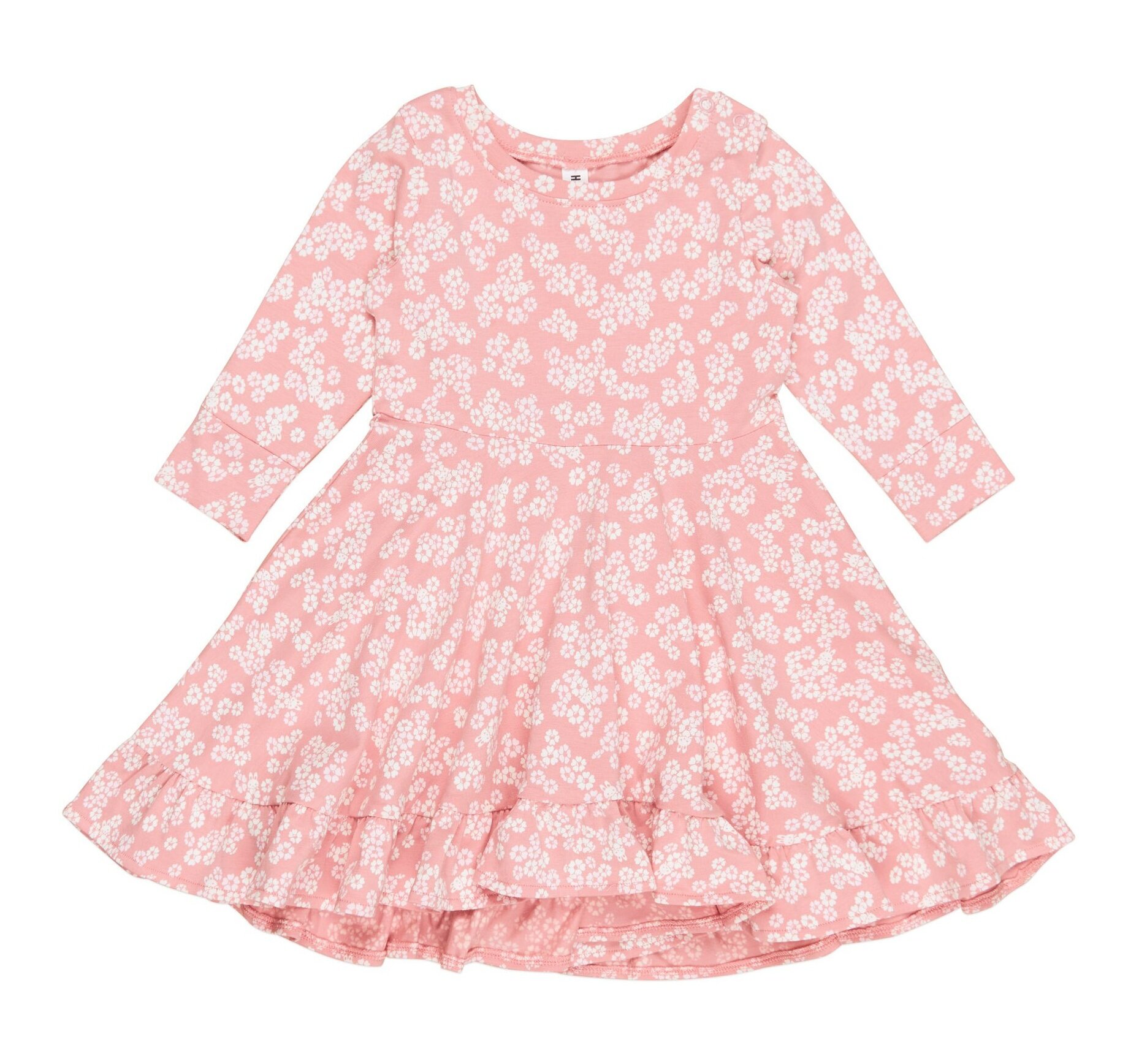 Super soft, premium organic cotton jersey long sleeve swing dress with all over peek a boo bunny print. This is one of our fave Huxbaby dress styles - super comfy, suits all seasons and has that twirl! Baby sizes have stainless steel snaps at shoulder opening. Made from GOTS certified organic cotton. Sustainably produced. Safe AZO free dyes.