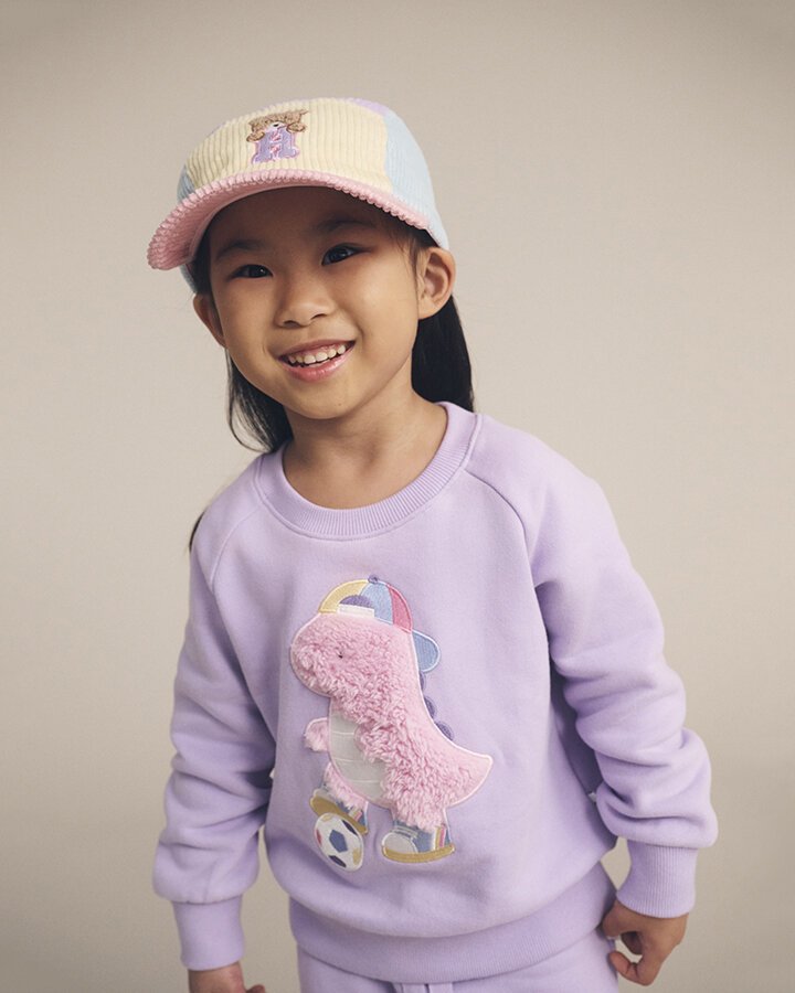 The Huxbaby soccersaurus sweatshirt is a warm and cosy fleece sweatshirt is made from fluffy organic cotton, it features Dino the Dinosaur embroidery on the tummy and stainless steel back snaps in baby sizes. Match it with our Orchid Soccersaurus Track Pant for a co-ord look.