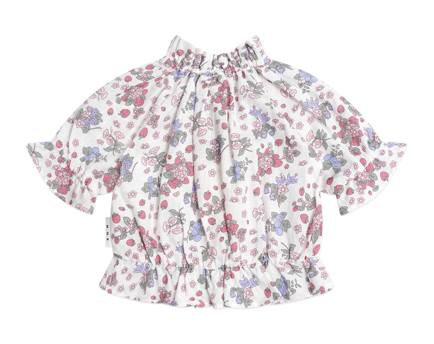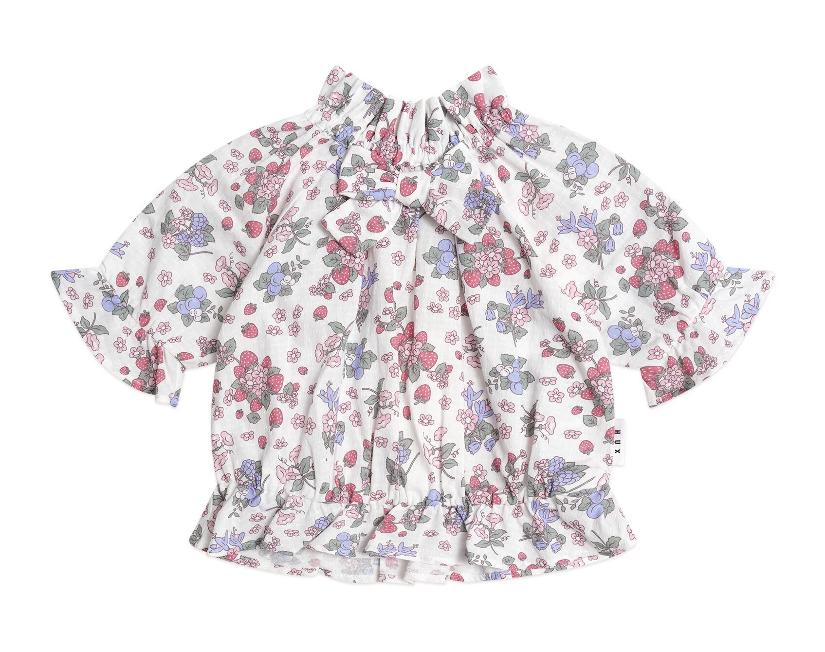 The Huxbaby Strawberry Garden Pussybow Blouse is the perfect short sleeve blouse. Made from super soft, lightweight organic cotton, it features beautifully draped elbow-length puff sleeves and a softly elasticised waist. This gorgeous blouse is made for comfort too - wear it alone over skirts, shorts and jeans, or layer it with a pinafore or overalls.