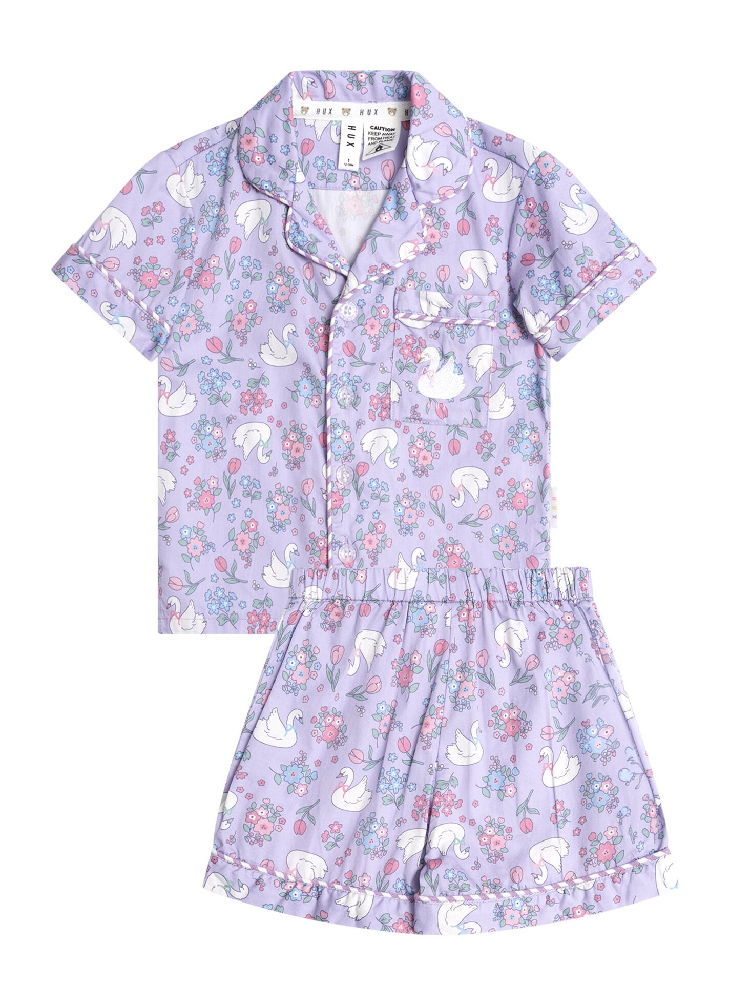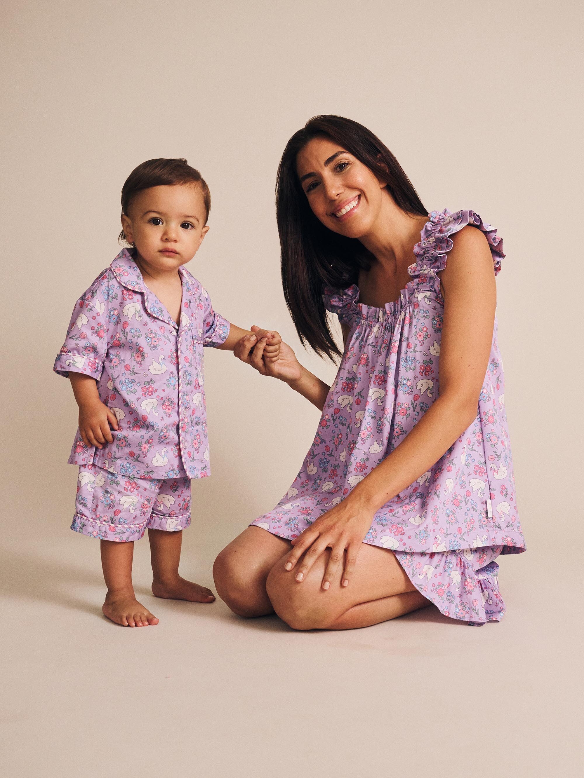 Made from soft cotton sateen, the Huxbaby Swanning About PJs feature an all over floral swan print, a soft and stretchy waistband to keep little tummies comfy and a special front pocket with swan embroidery.