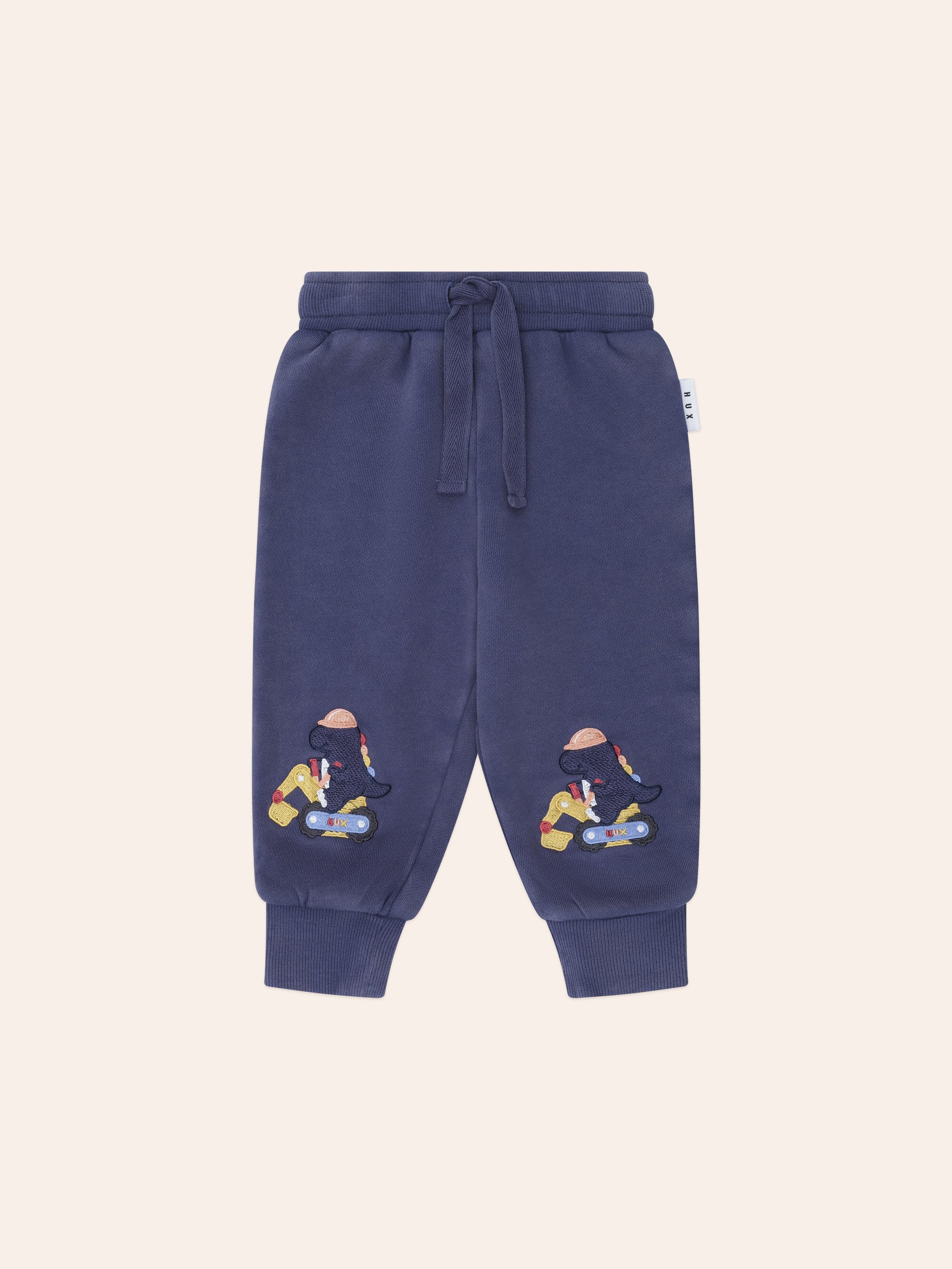Stay warm and cosy in the Huxbaby Tradie Dino fluffy terry track pants. Made from organic cotton, they feature a functional drawstring for an adjustable fit, a cute-yet-comfy Tradie Dino embroidery knee detail and a soft, stretchy waistband to keep little tummies snug.