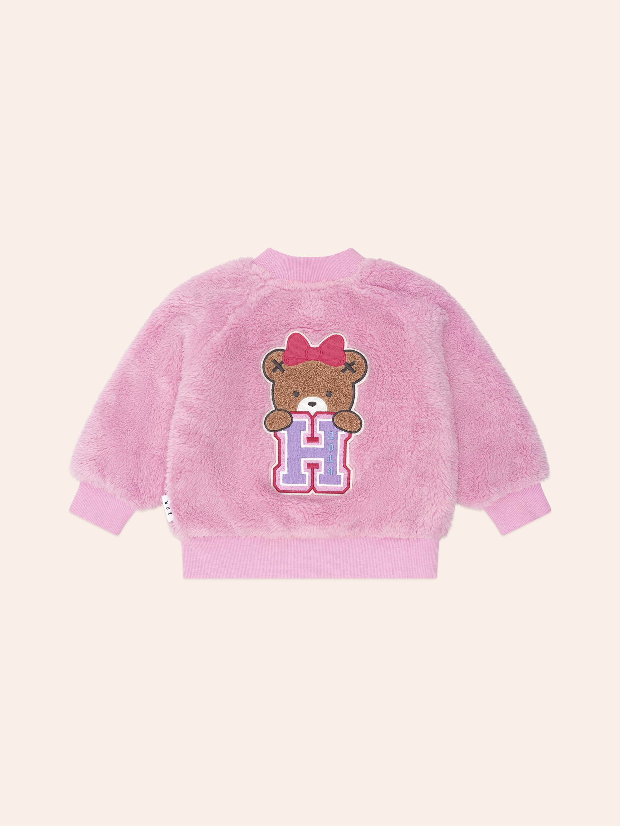 The Huxbaby Varsity Huxxette Fur Jacket is a soft and furry jacket perfect for layering on colder days. Made with extra furry fabric, this cool weather must-have feels like a hug you can wear. It has a zip for easy dressing and custom Huxette embroidery.